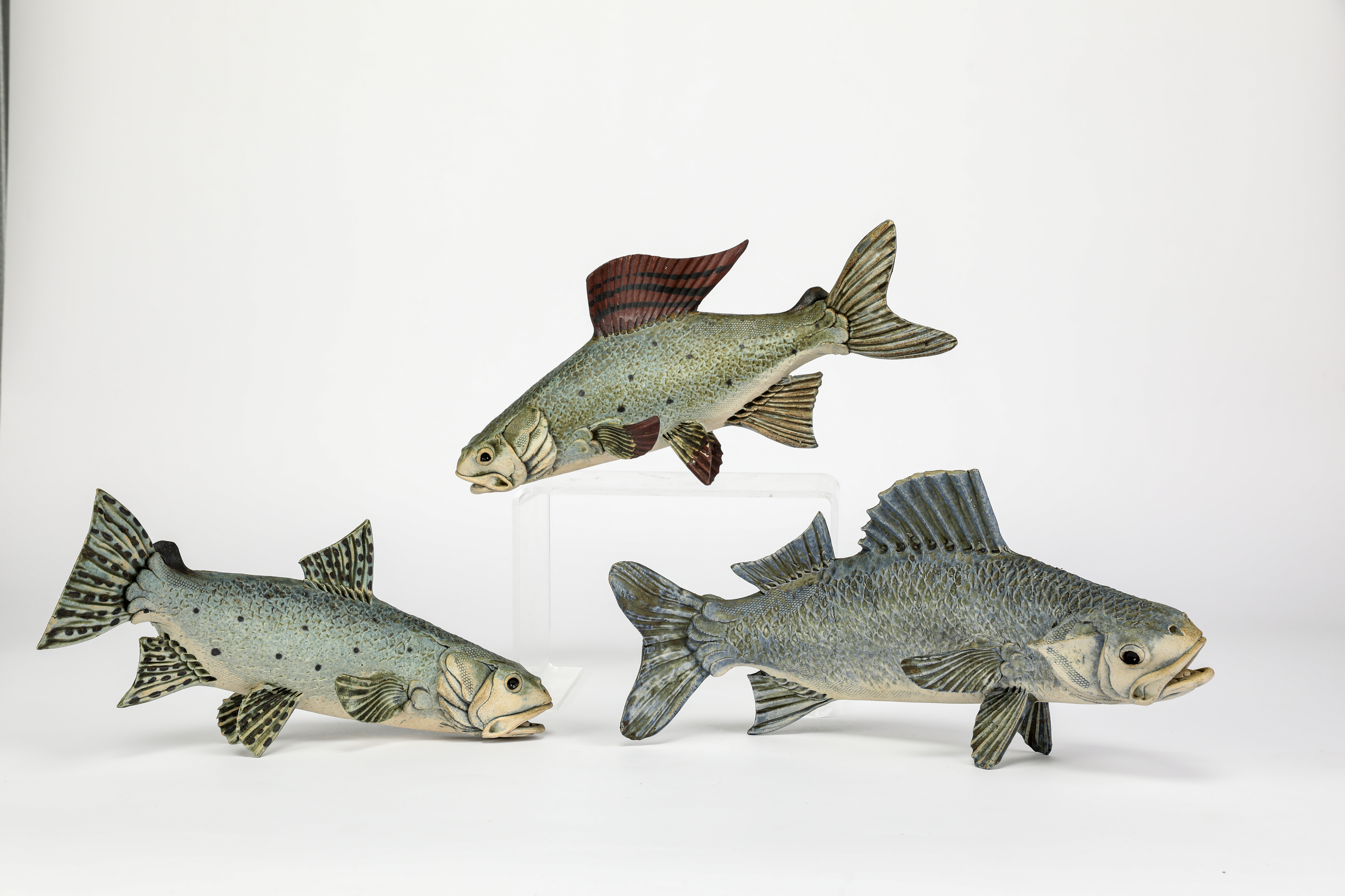 Three stoneware fish - Bass, Trout, and Grayling, 2002