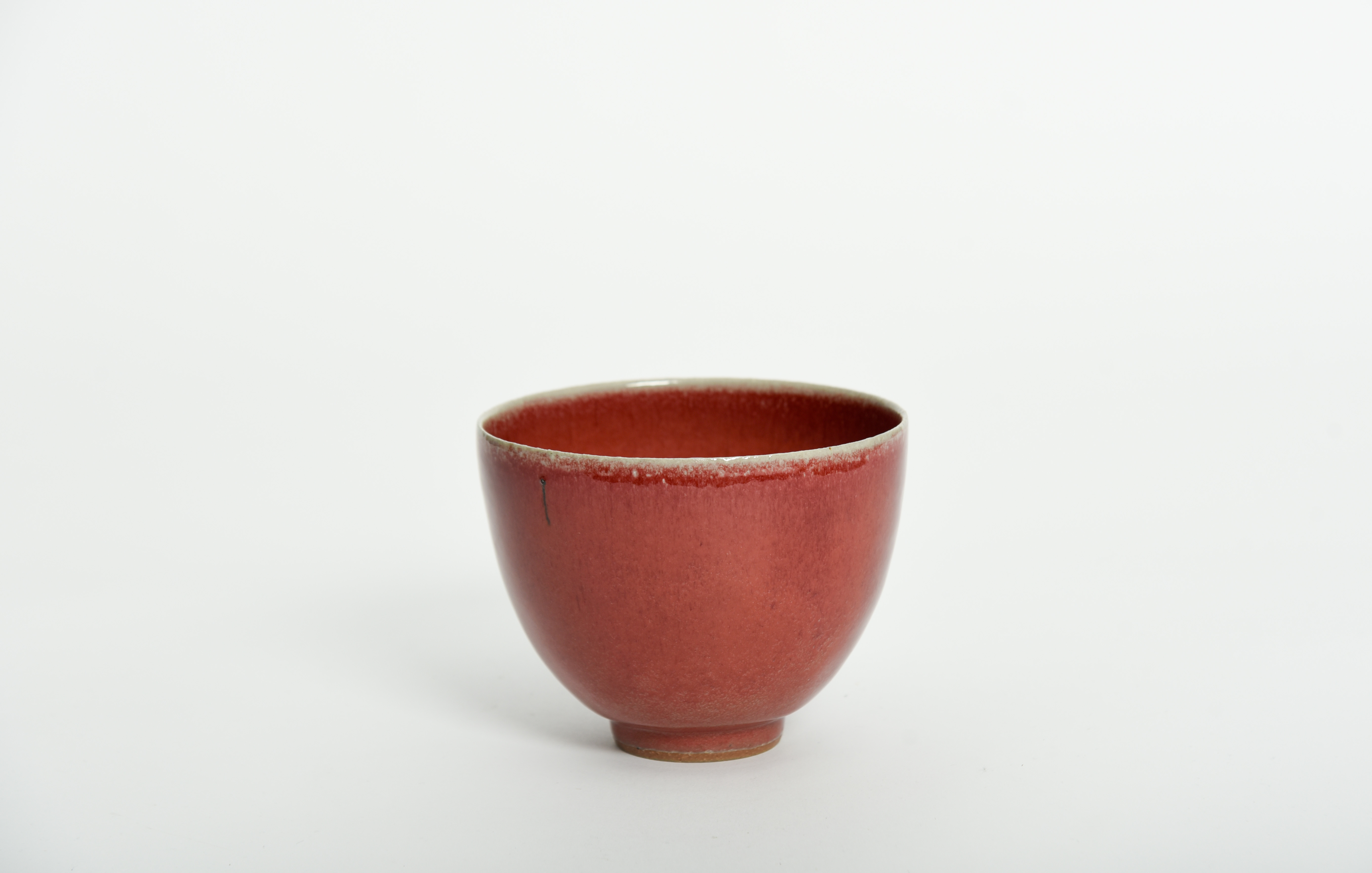 covered in a deep red glaze with light blue inclusions