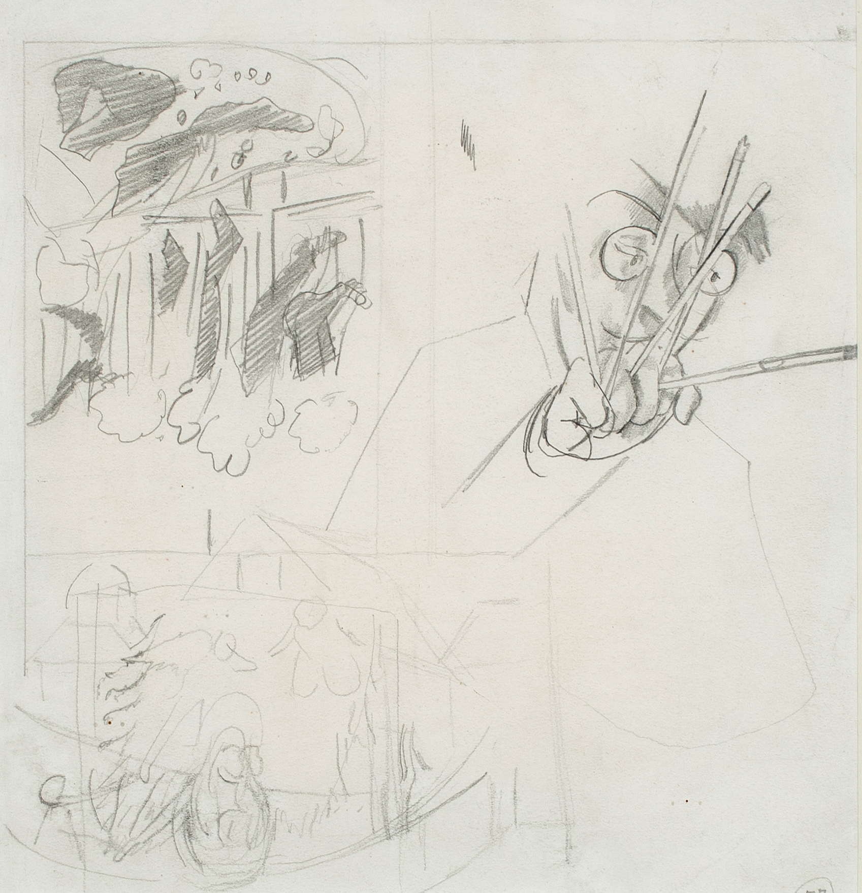 Artist holding Five Brushes and other Studies