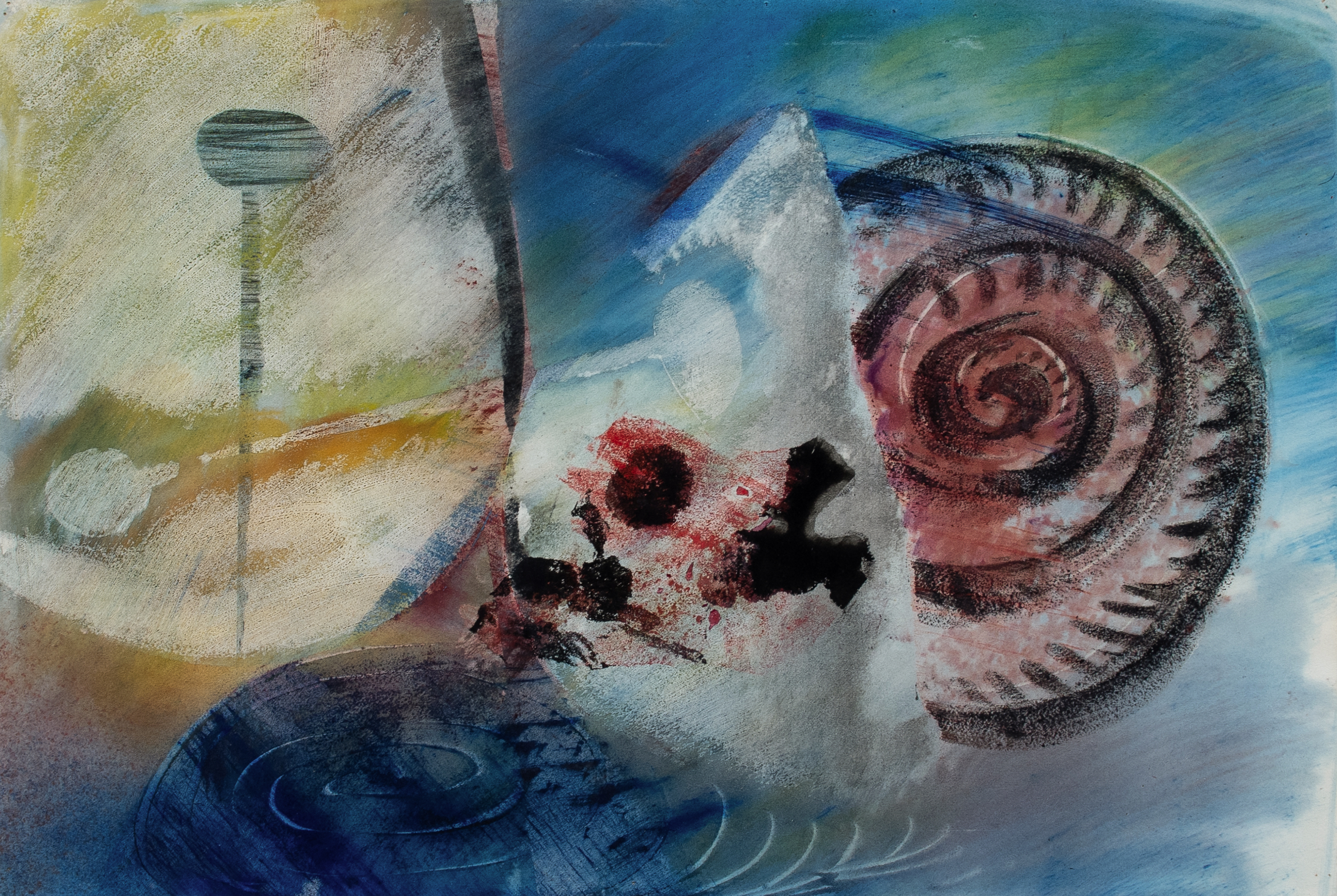 Watercolour, bodycolour, pastel and wax crayon