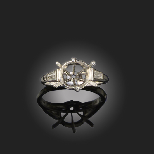 MAUBOUSSIN, A DIAMOND-SET RING MOUNT, set with a tapering baguette-cut diamond to each shoulder, in platinum, signed Mauboussin, numbered 03990 577, stamped PT 950, size O 1/2