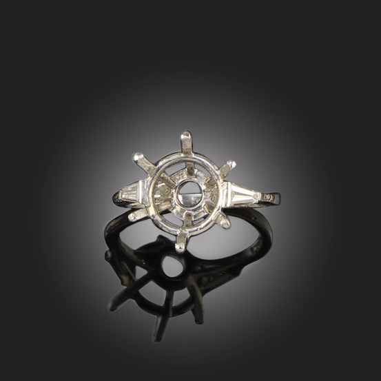 KUTCHINSKY, A DIAMOND-SET RING MOUNT, set with a tapering baguette-cut diamond to each shoulder, in platinum, signed Kutchinsky, size O