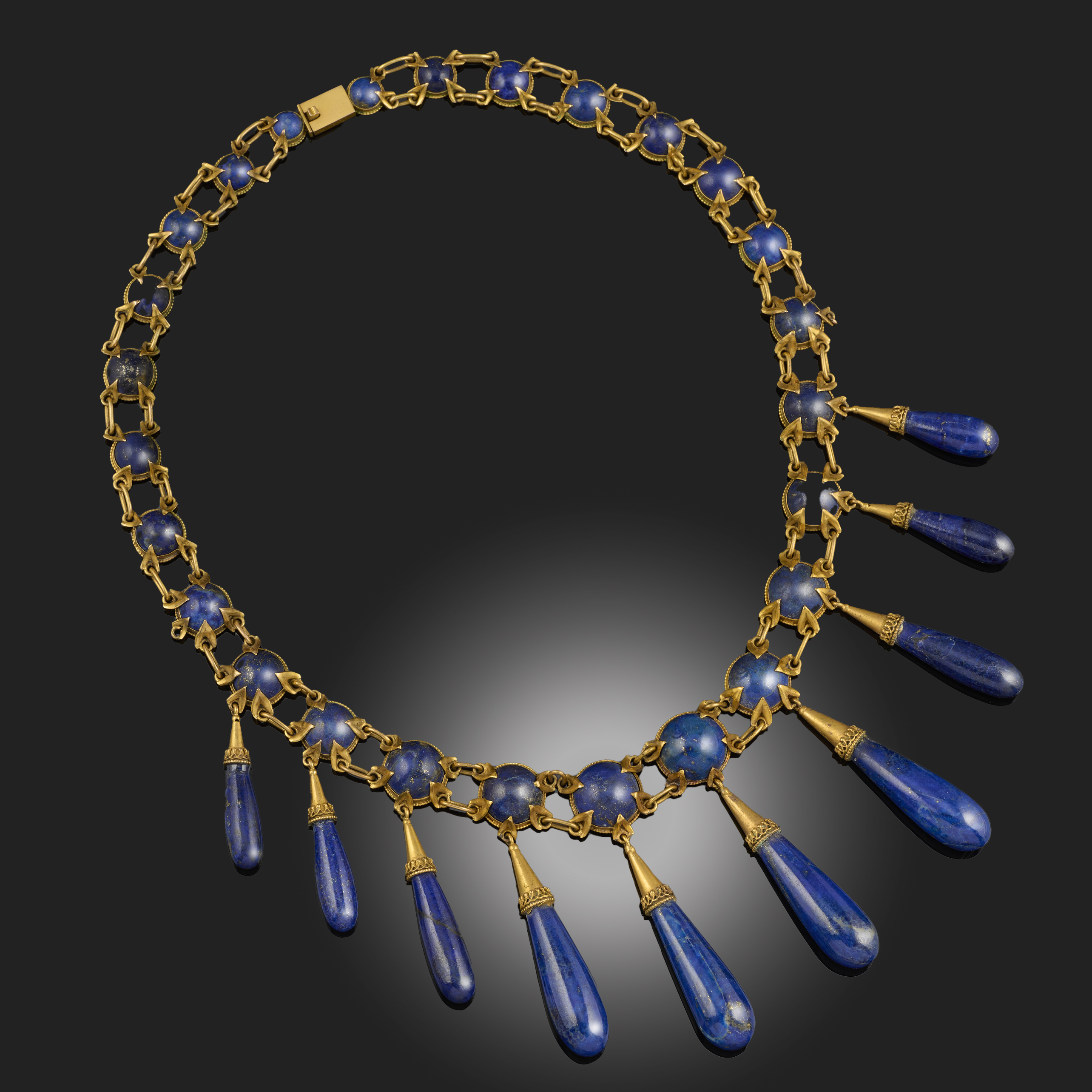A LAPIS LAZULI AND GOLD NECKLACE, C1870