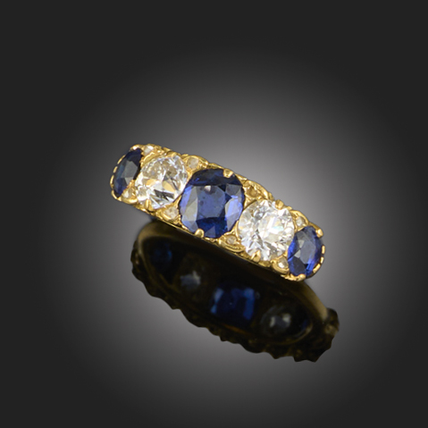 A SAPPHIRE AND DIAMOND FIVE STONE RING