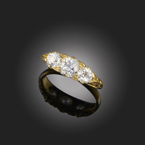 A DIAMOND THREE-STONE RING, set with three graduated old circular-cut diamonds, mounted in 18ct gold, London hallmarks for 1978, size N