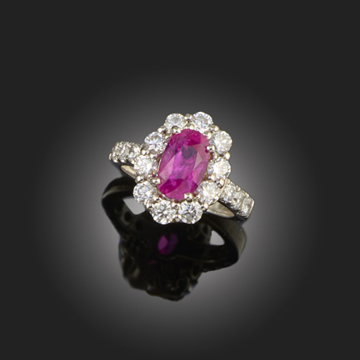 A RUBY AND DIAMOND CLUSTER RING