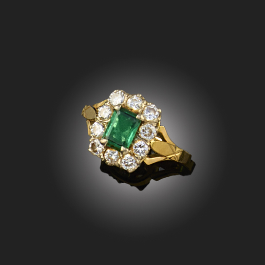 AN EMERALD AND DIAMOND CLUSTER RING