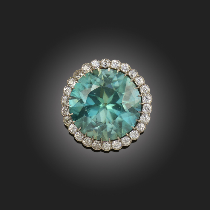 AN EARLY 20TH CENTURY ZIRCON AND DIAMOND CLUSTER BROOCH
