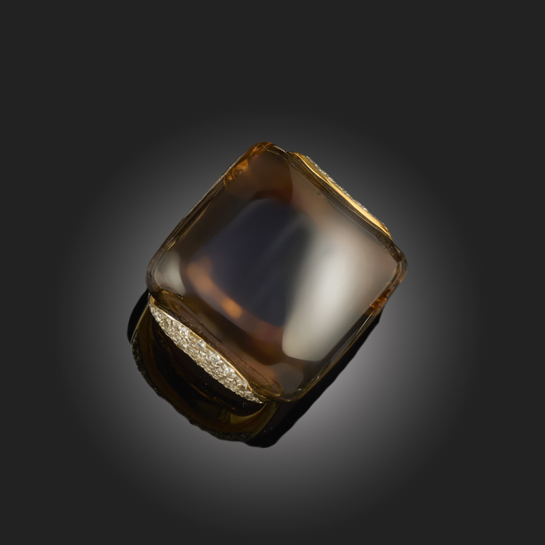 GAVELLO, A SMOKEY QUARTZ AND DIAMOND RING