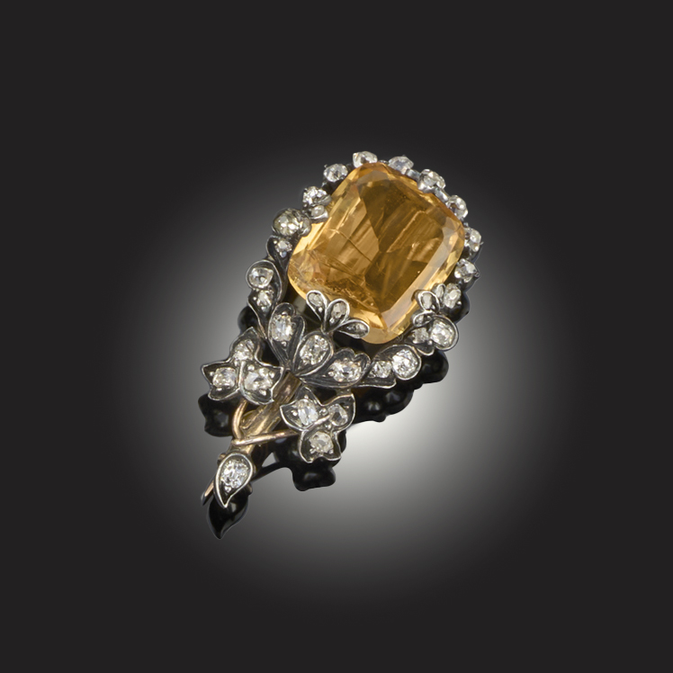 A VICTORIAN TOPAZ AND DIAMOND BROOCH