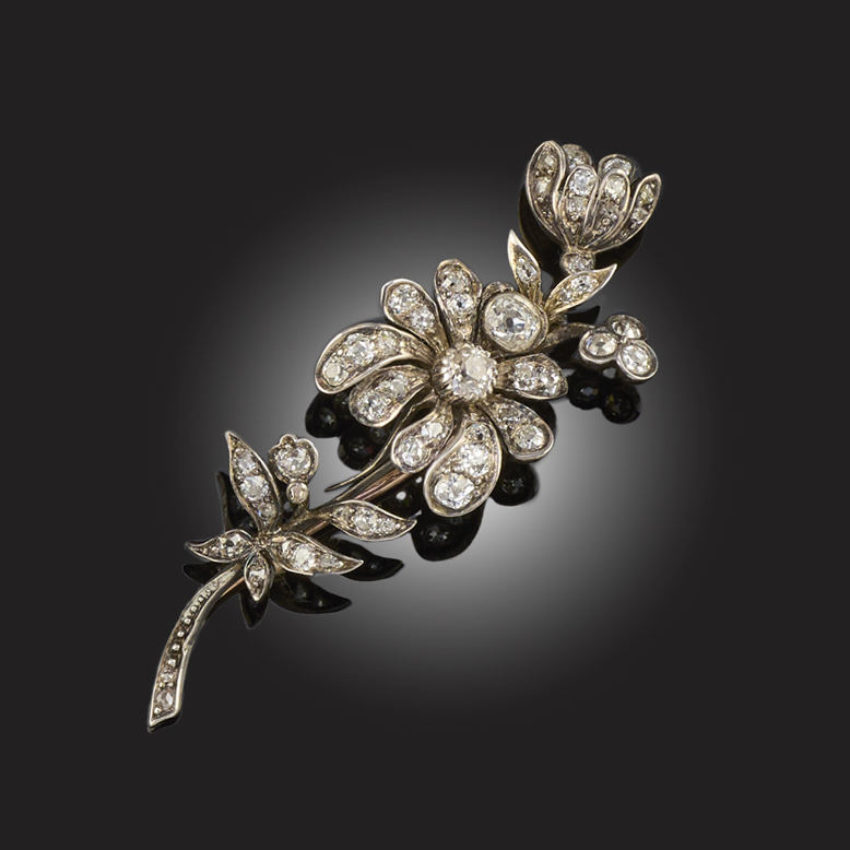 A VICTORIAN DIAMOND FOLIATE BROOCH