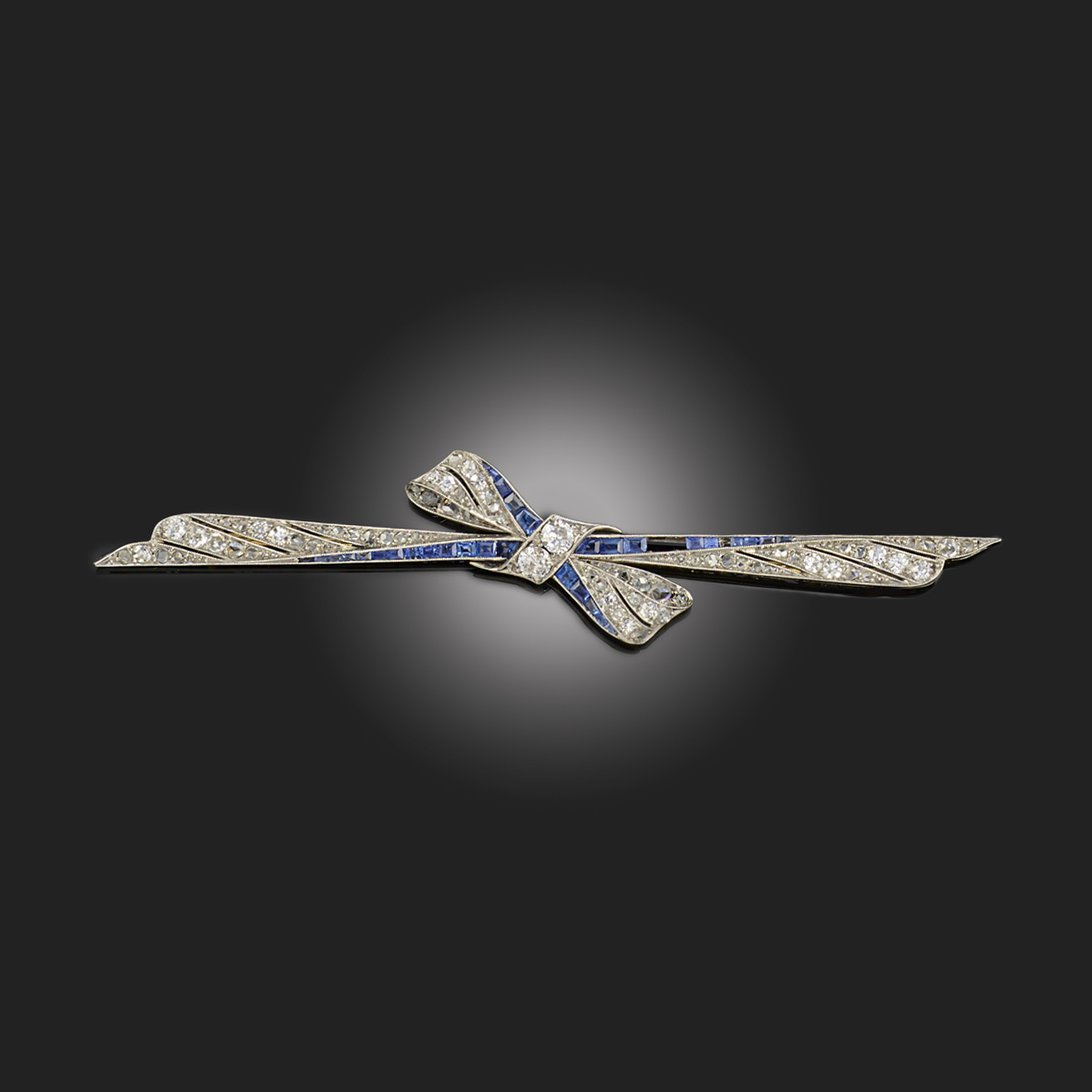 AN ART DECO SAPPHIRE AND DIAMOND BOW BROOCH