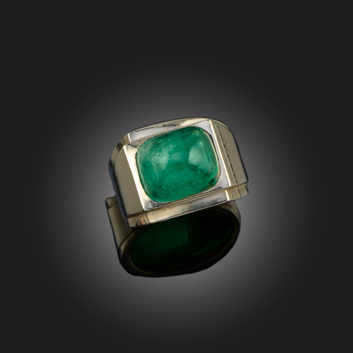 A LATE ART DECO EMERALD RING