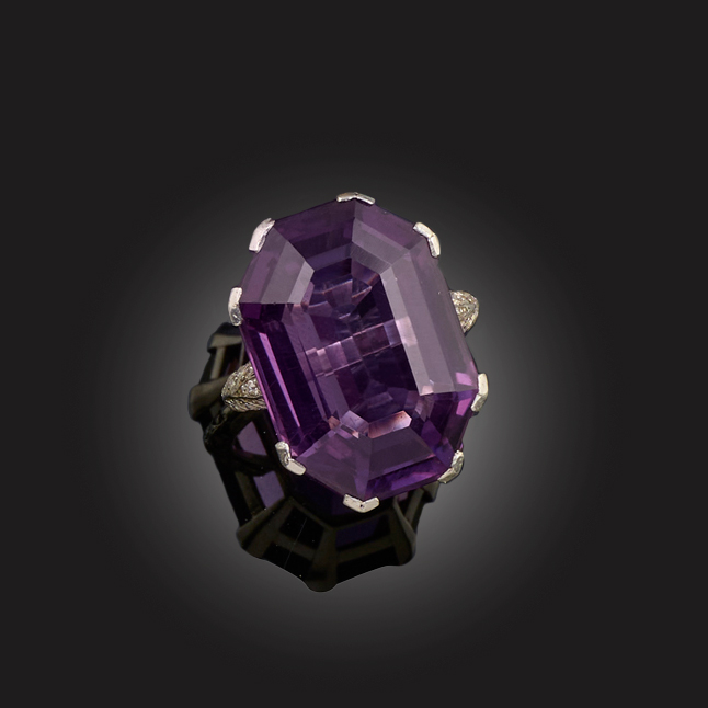 AN AMETHYST AND DIAMOND RING, EARLY 20TH CENTURY