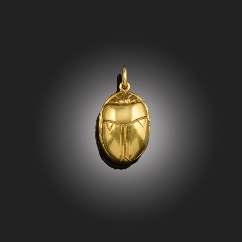 A 19TH CENTURY GOLD SCARABOID LOCKET PENDANT
