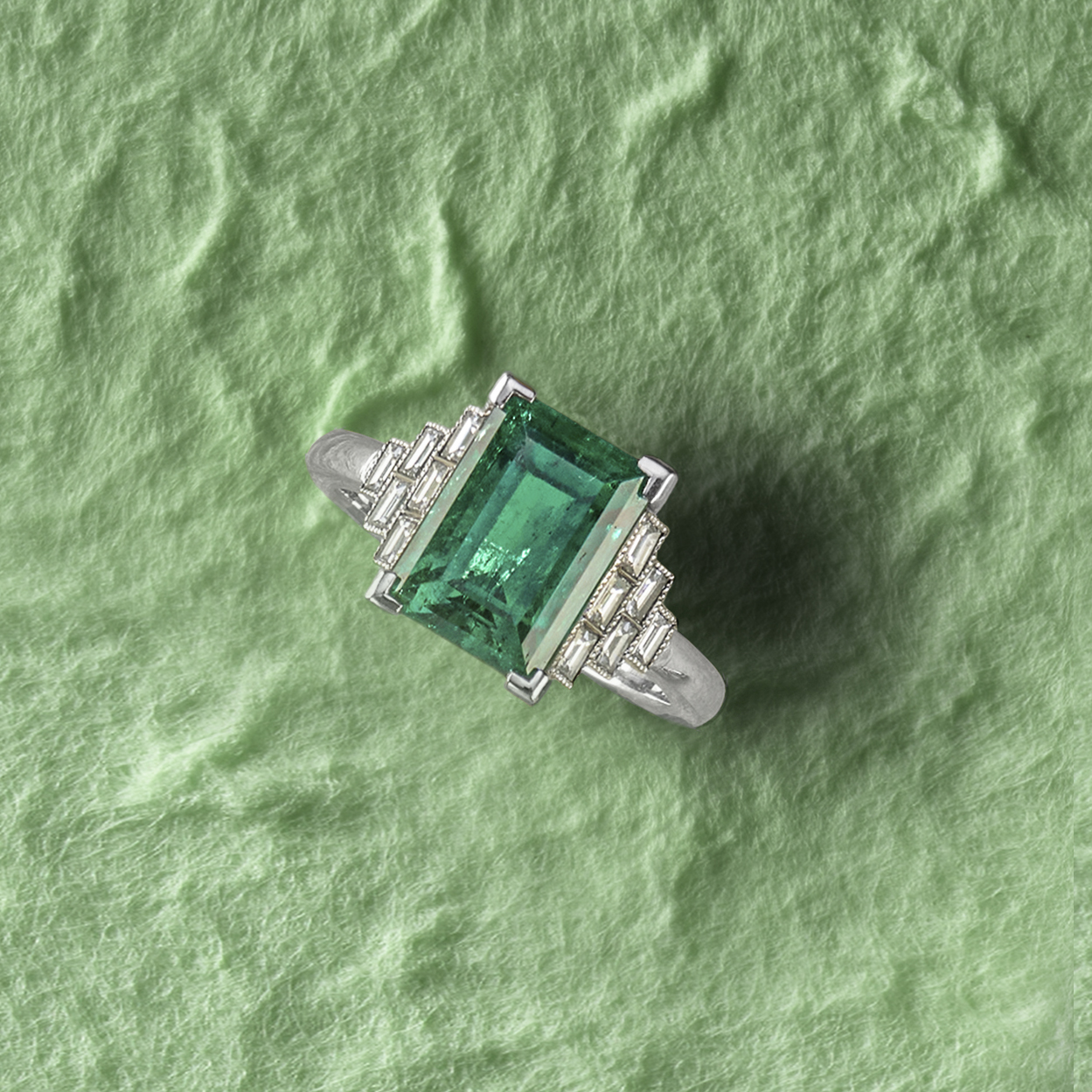 AN EMERALD AND DIAMOND RING