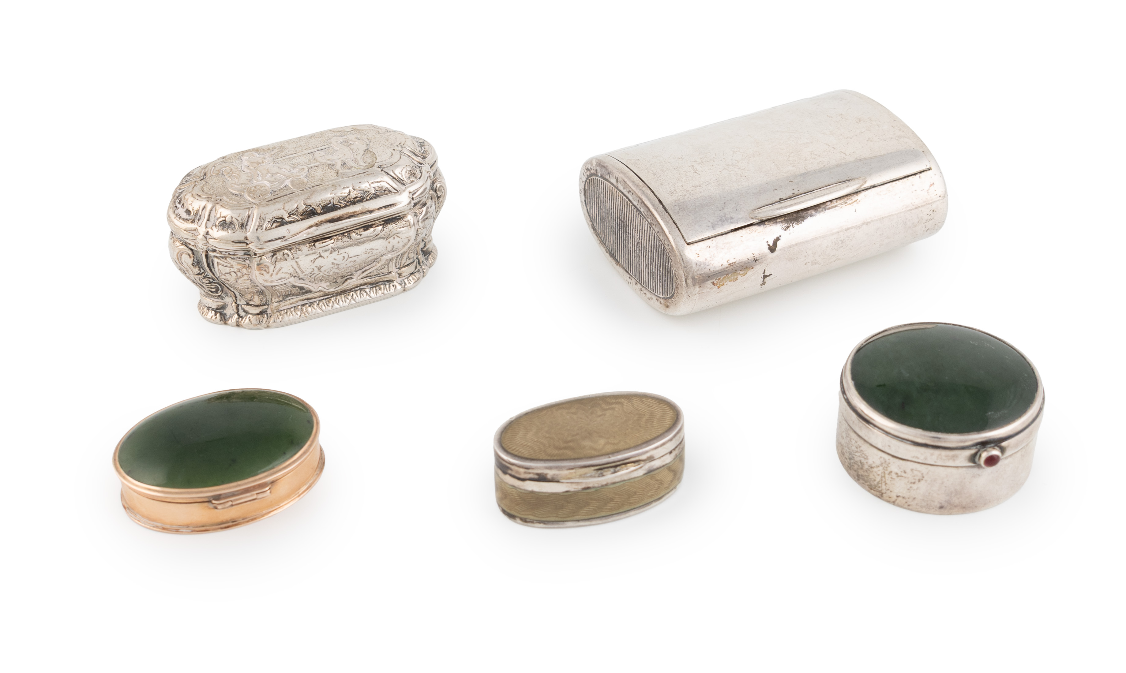 A collection of small silver boxes,