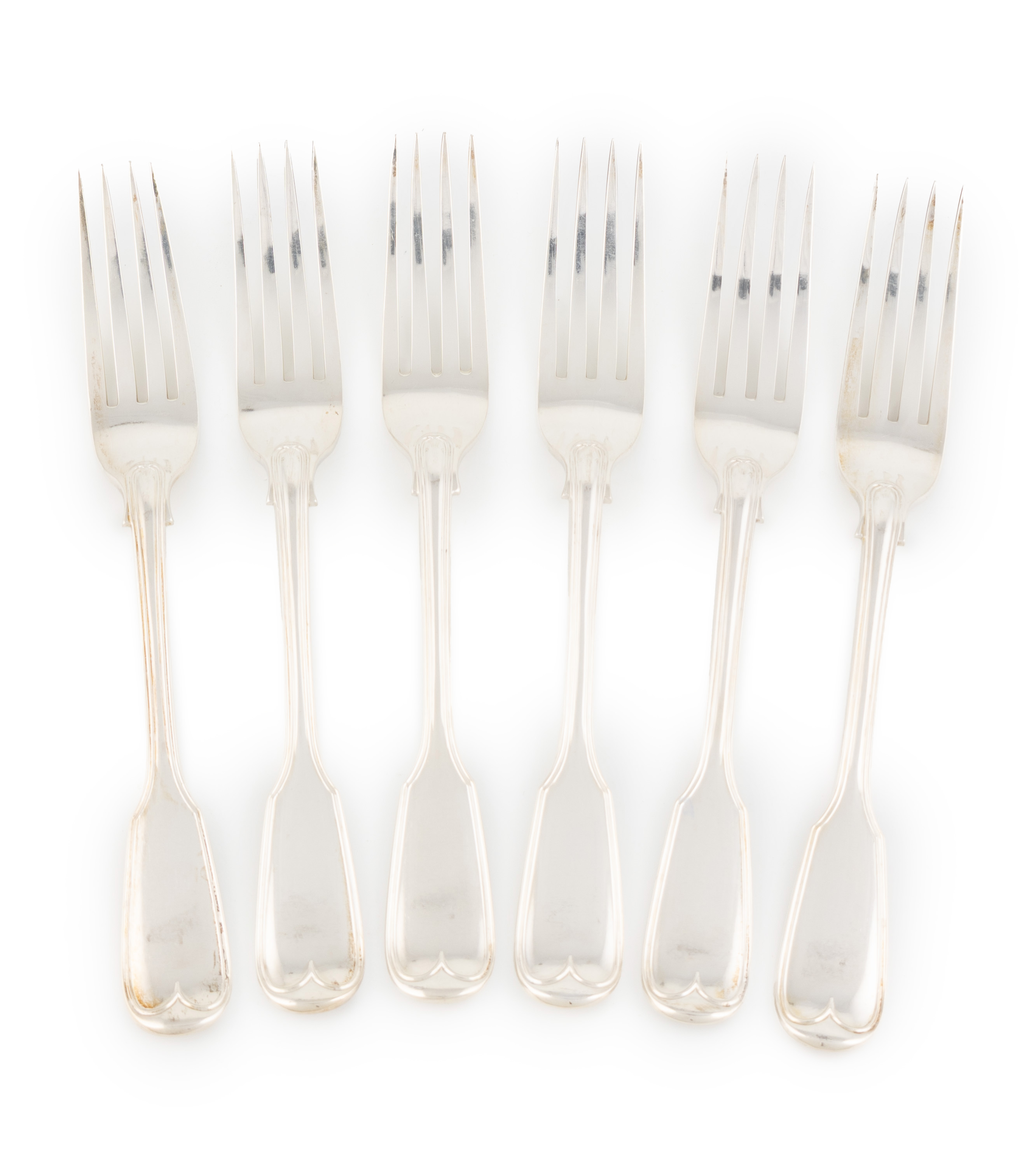 A set of six Victorian silver Fiddle and Thread pattern table forks, by George Adams, London 1848,