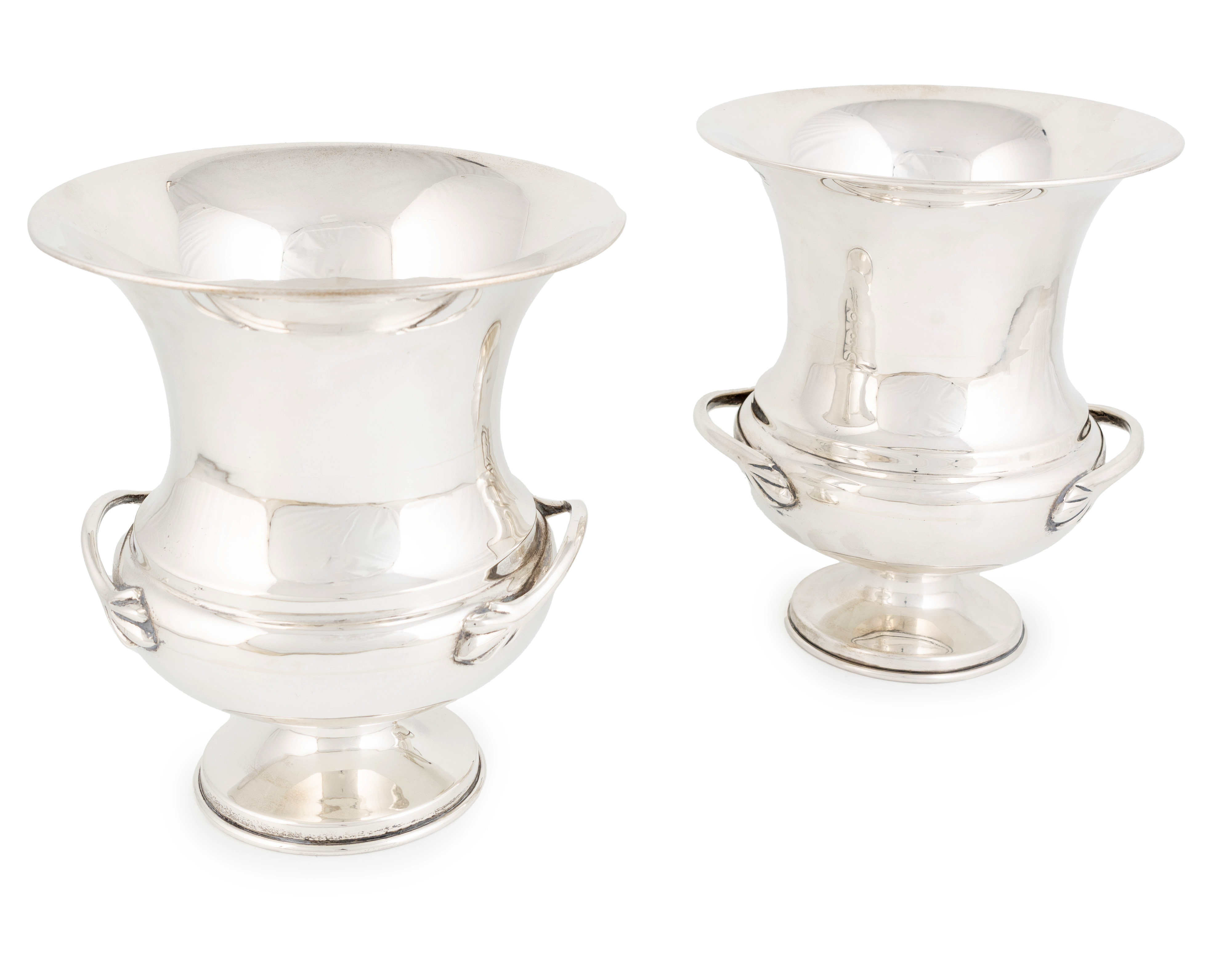 A pair of 20th century Mexican silver wine coolers, maker's mark AMA, of plain campana form with two