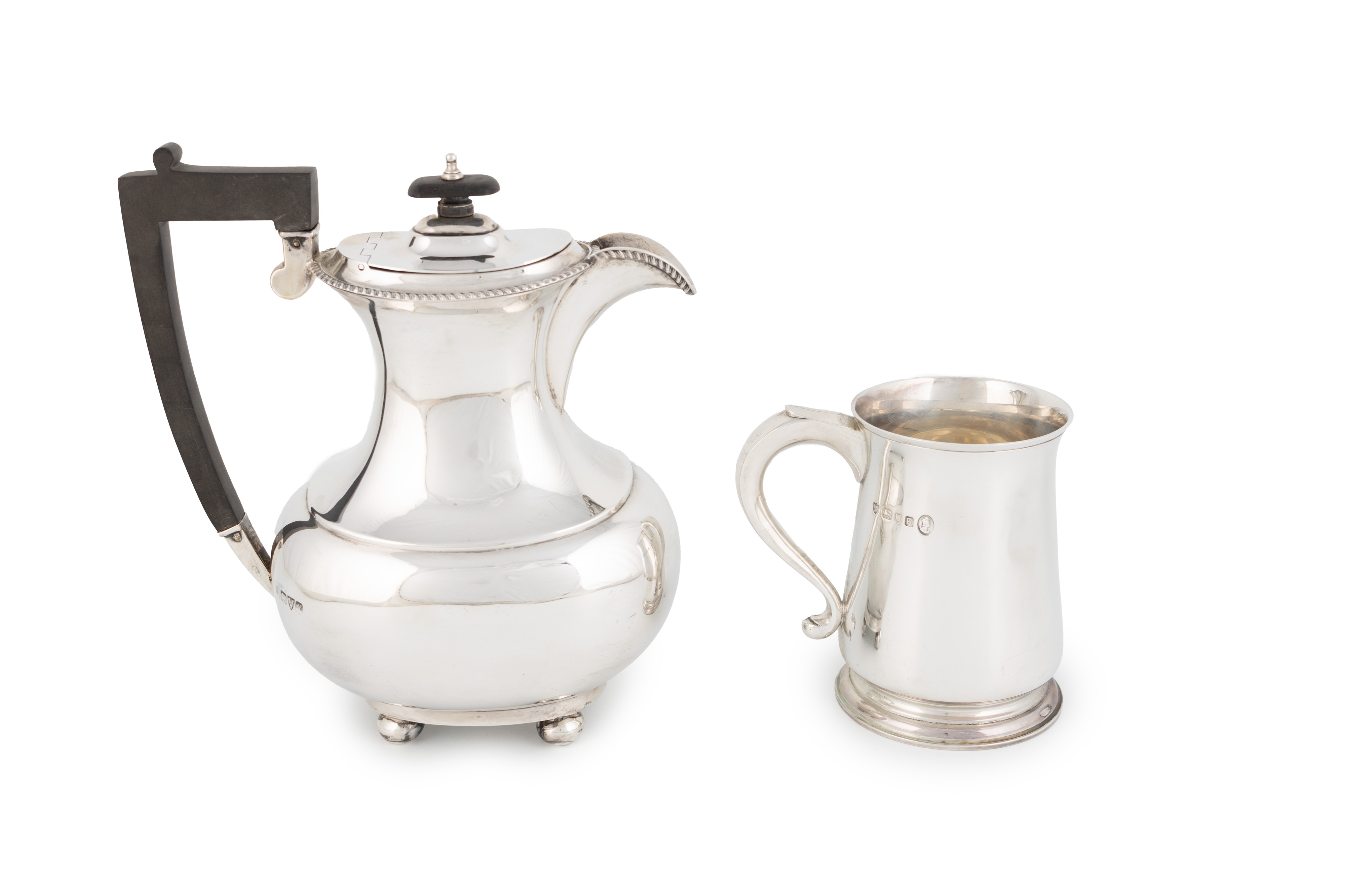 A silver coffee pot,