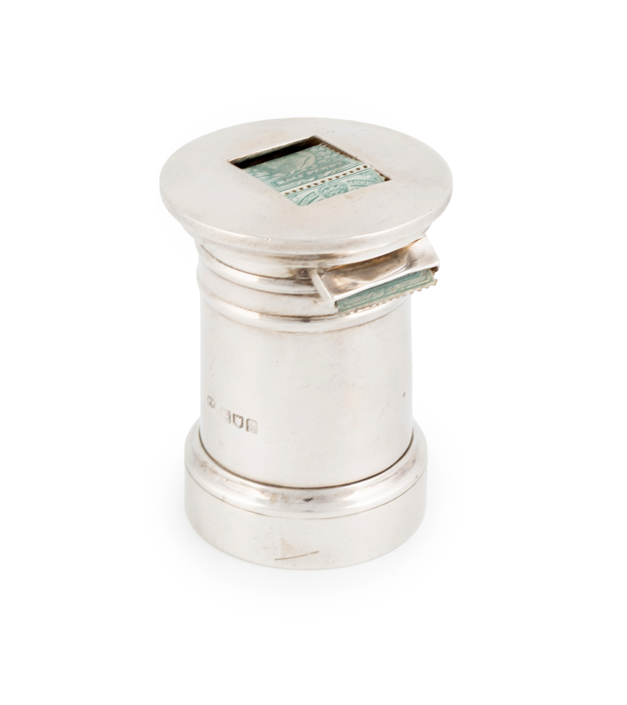 A novelty Edwardian silver stamp dispenser, by William Hornby, London 1905, in the form of a pillar