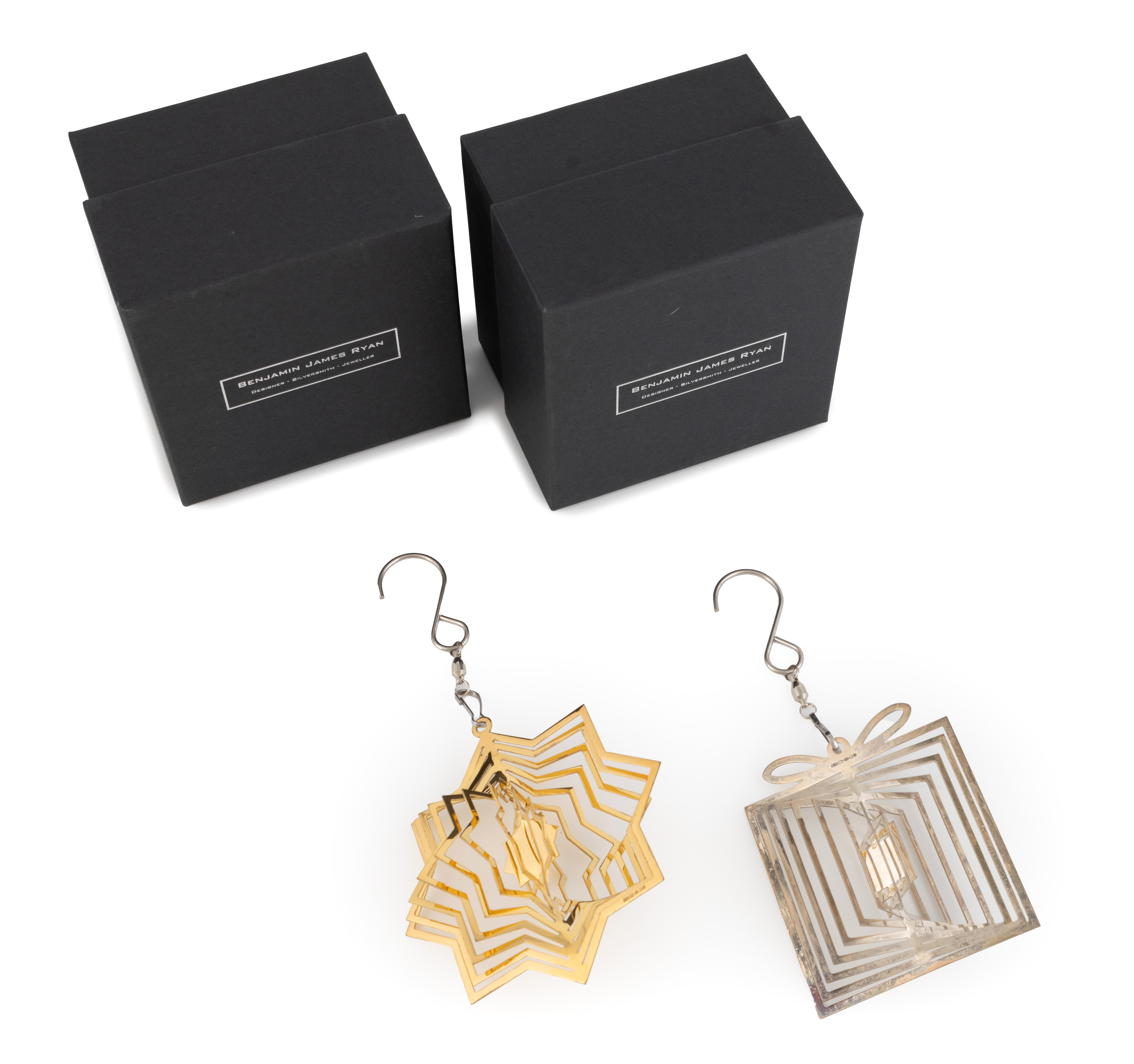 Two modern silver Christmas decorations, by Benjamin Ryan, London 2019, one of a star form with
