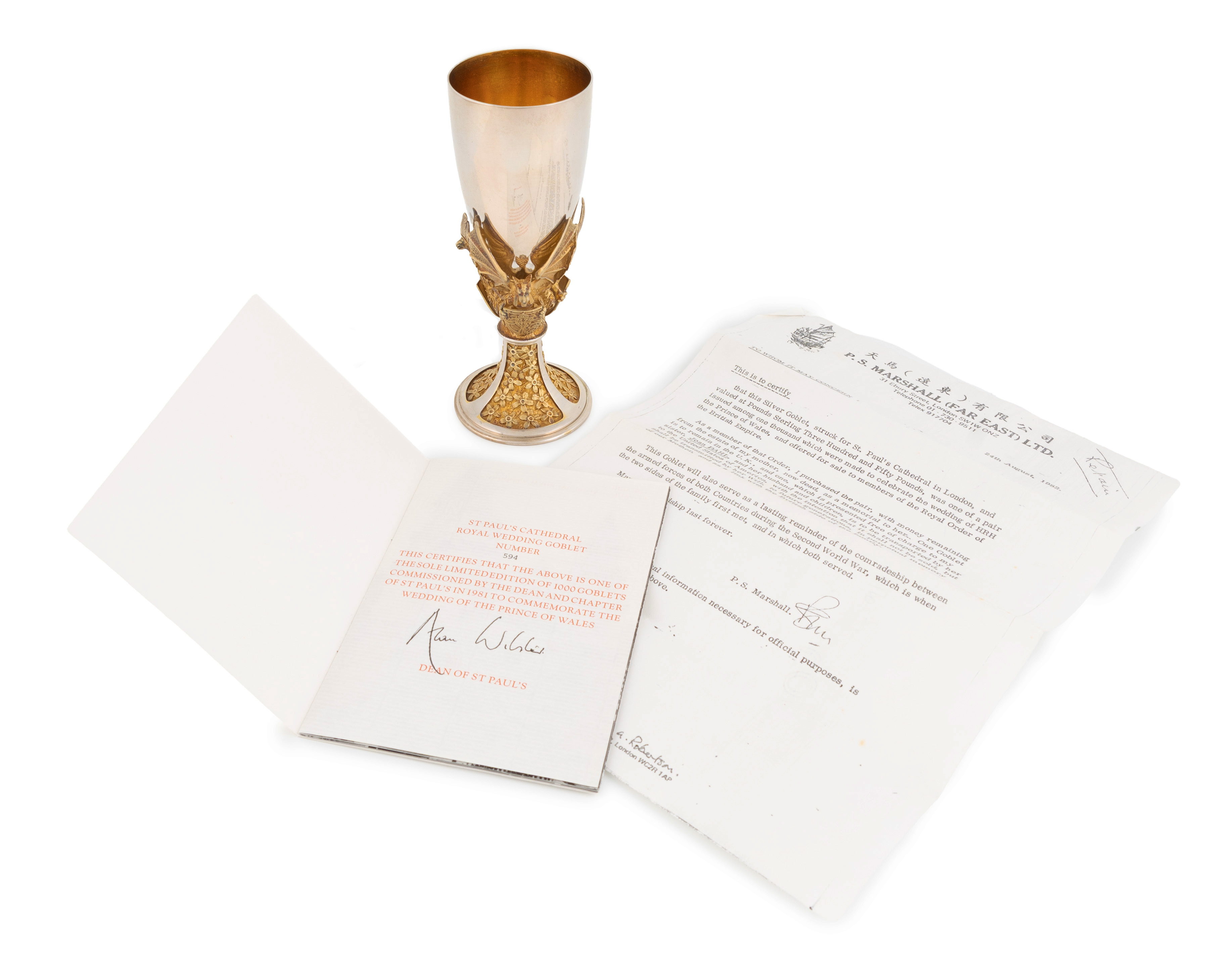 By Hector Miller for Aurum, a modern silver parcel-gilt commemorative goblet, London 1981,