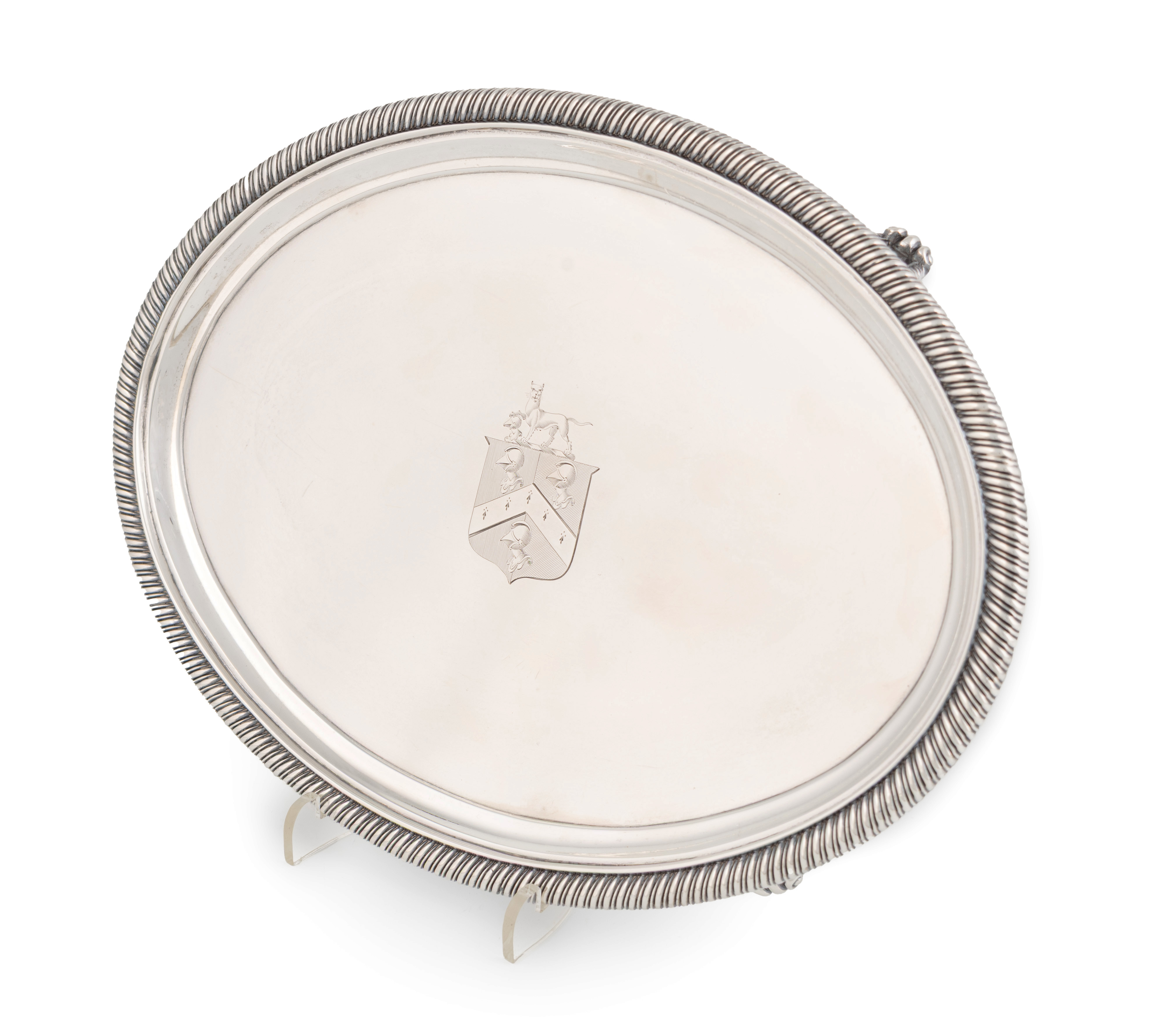 A George III silver salver, by Robert Sharp, London 1803, oval form with a gadrooned border, central