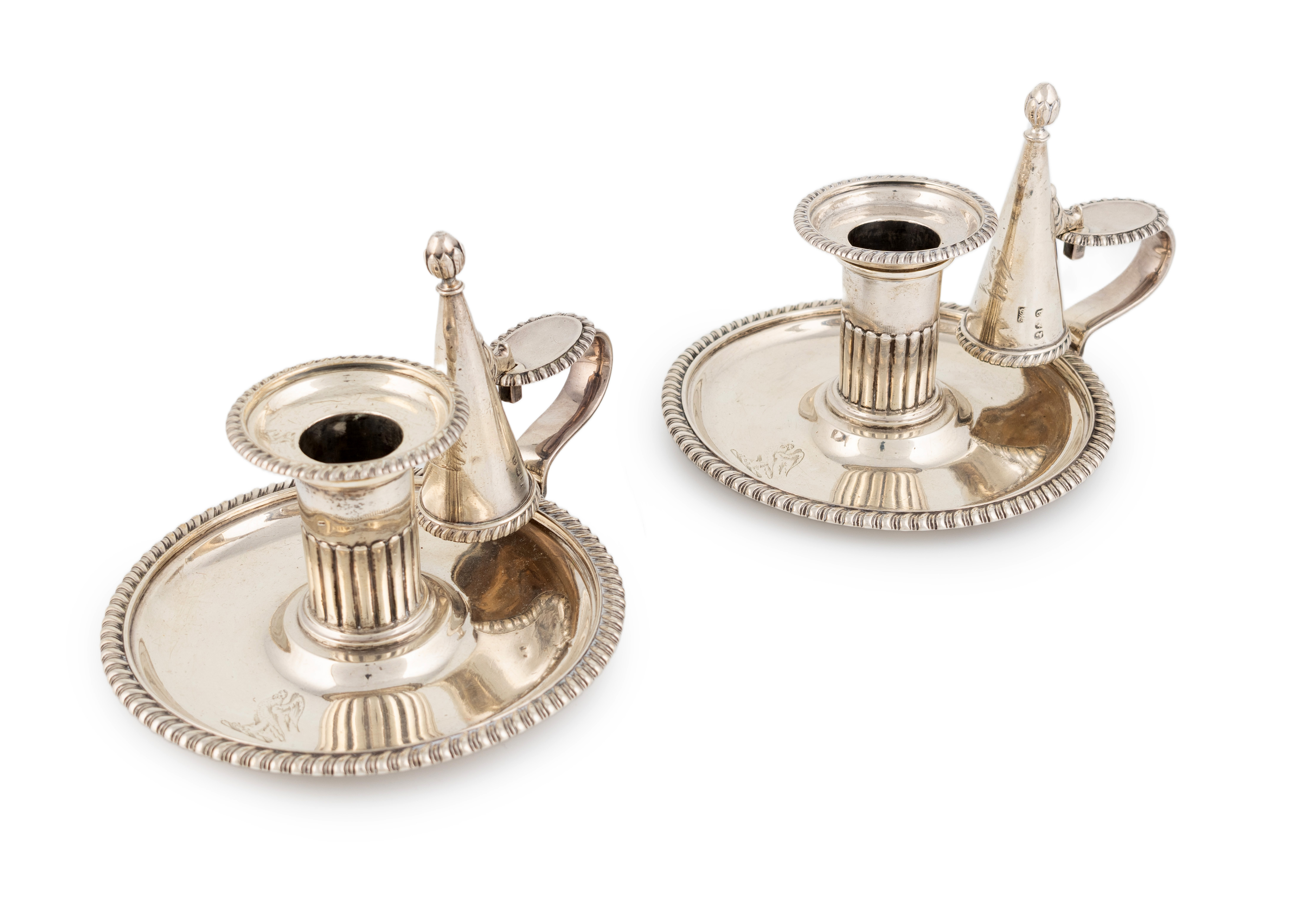 A pair of George III silver chambersticks, by William Burwash, London 1816, circular form with