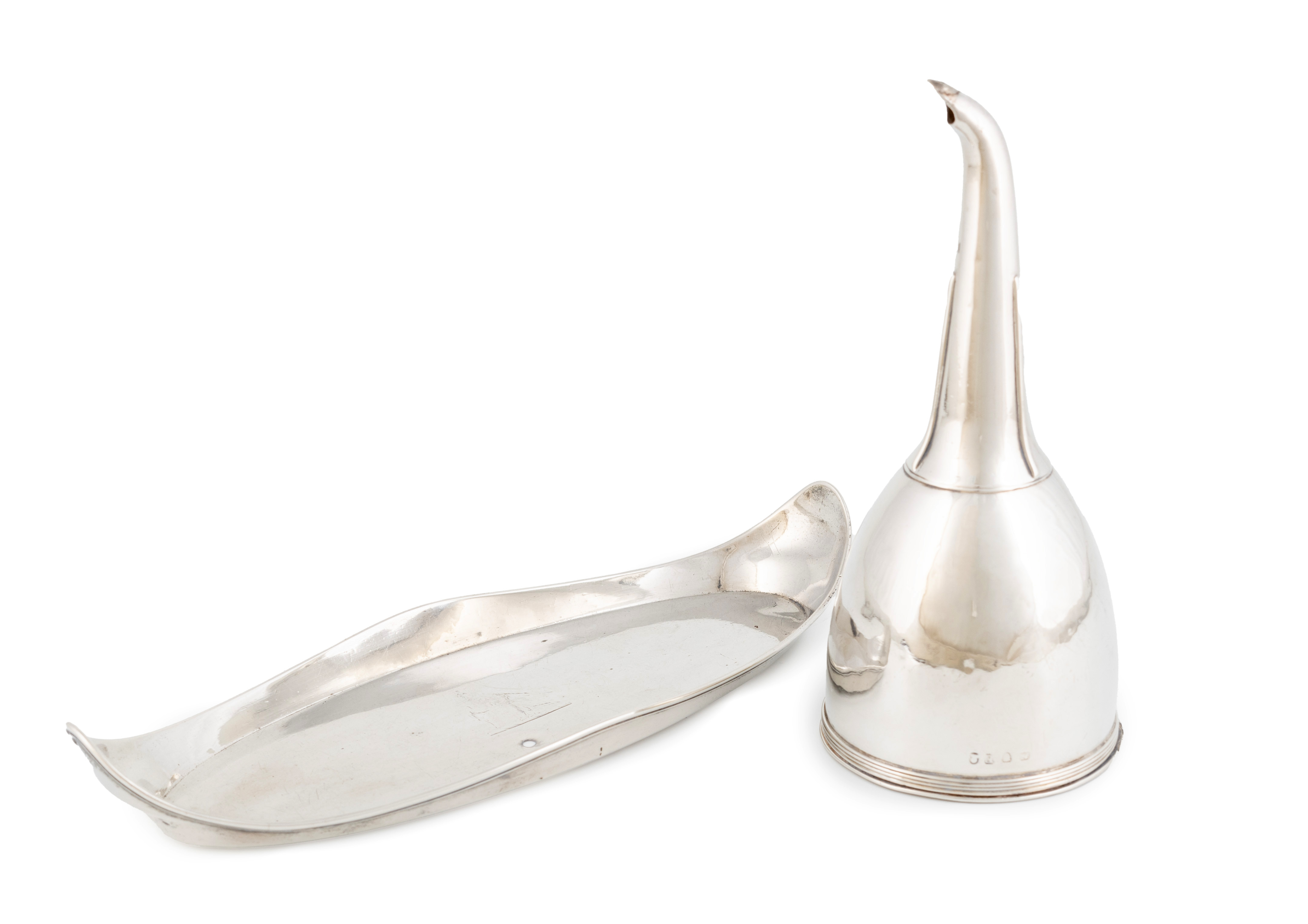 A George III silver wine funnel,