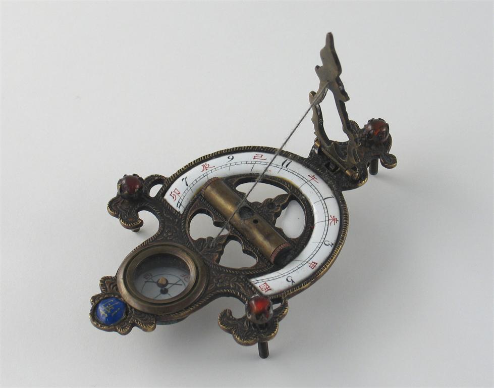 A Chinese metal and enamel travelling sundial