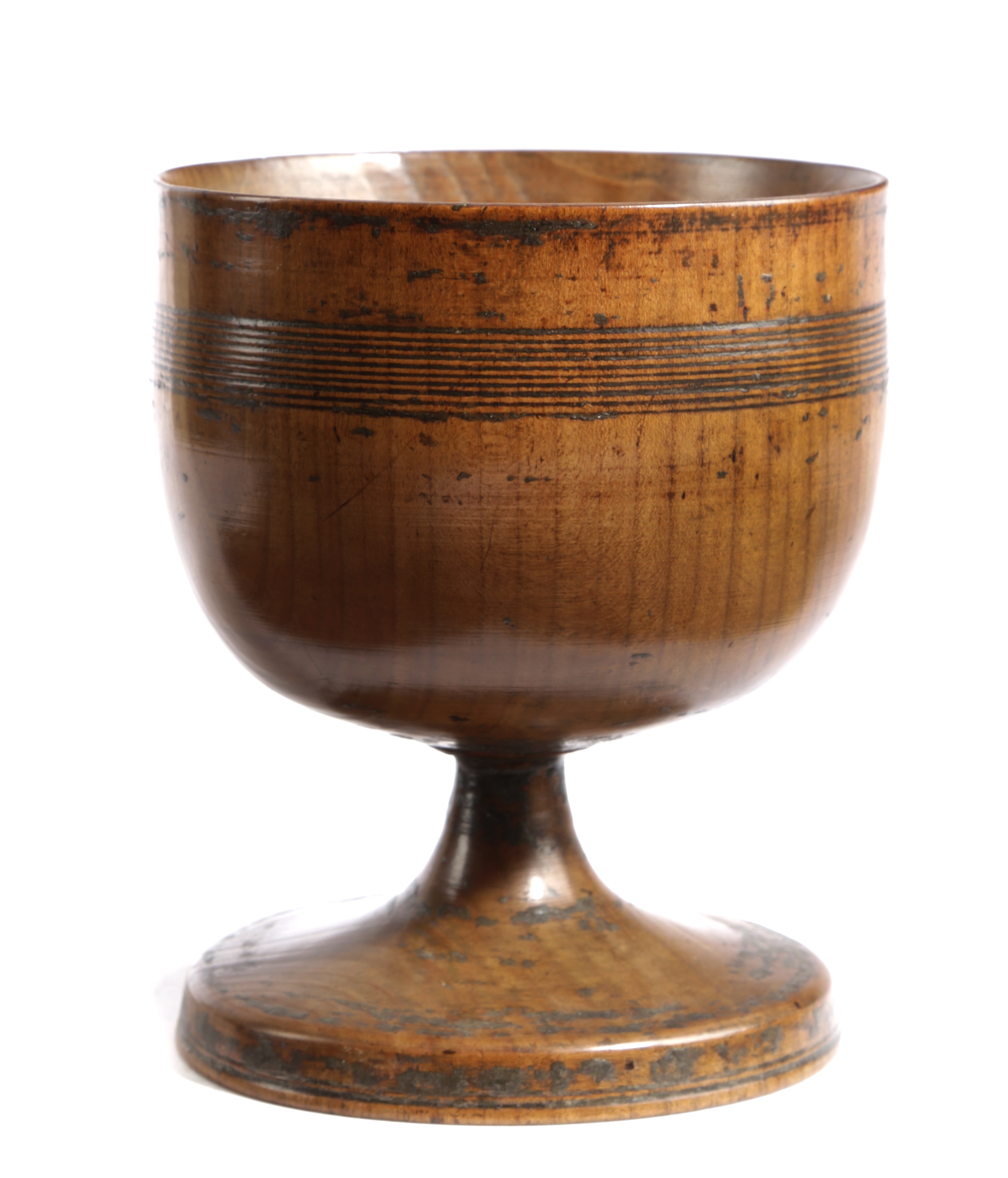 A TREEN FRUITWOOD TURNED FOOTED BOWL OR LOVING CUP