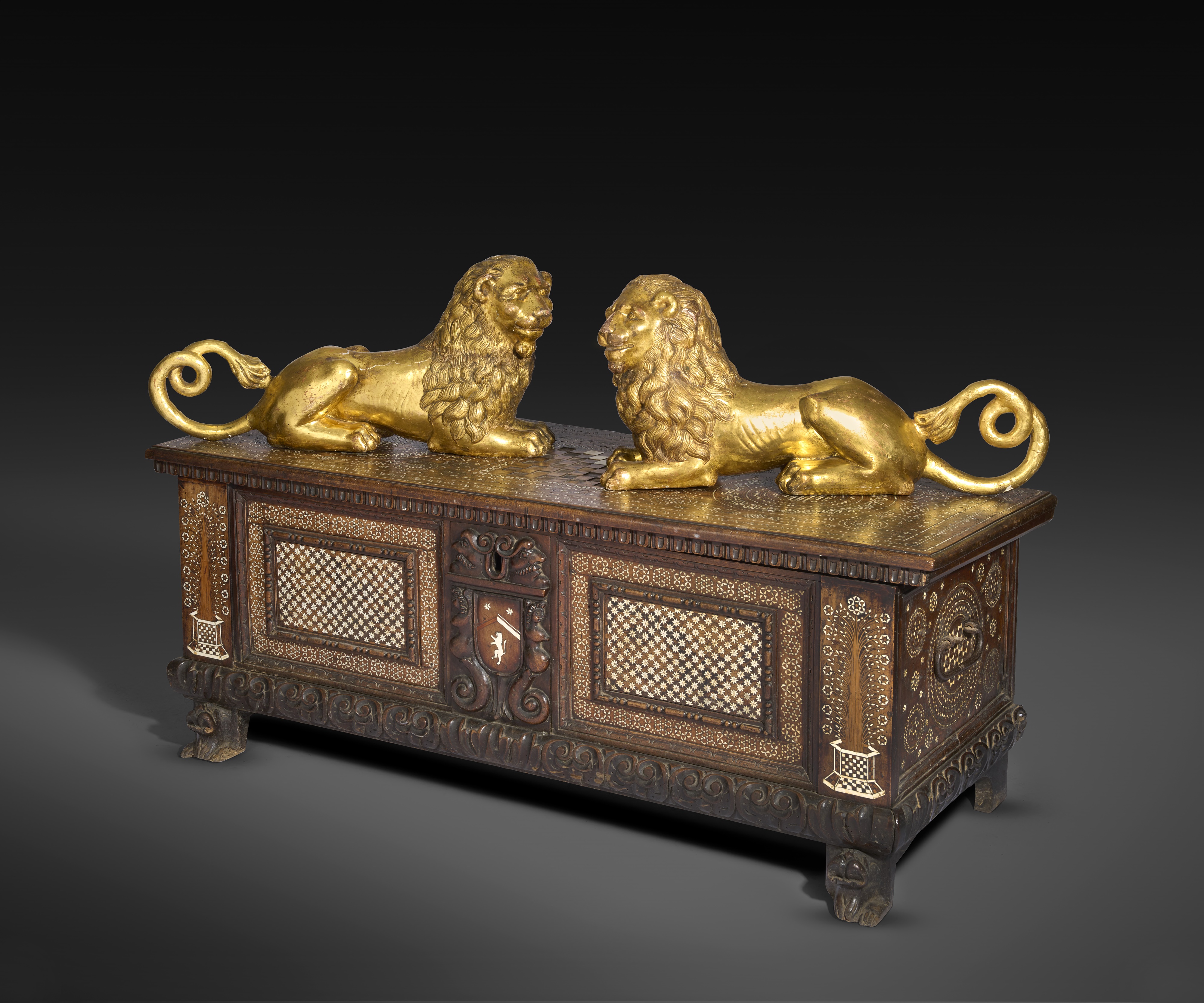 AN IMPRESSIVE PAIR OF ITALIAN CARVED GILTWOOD LIONS