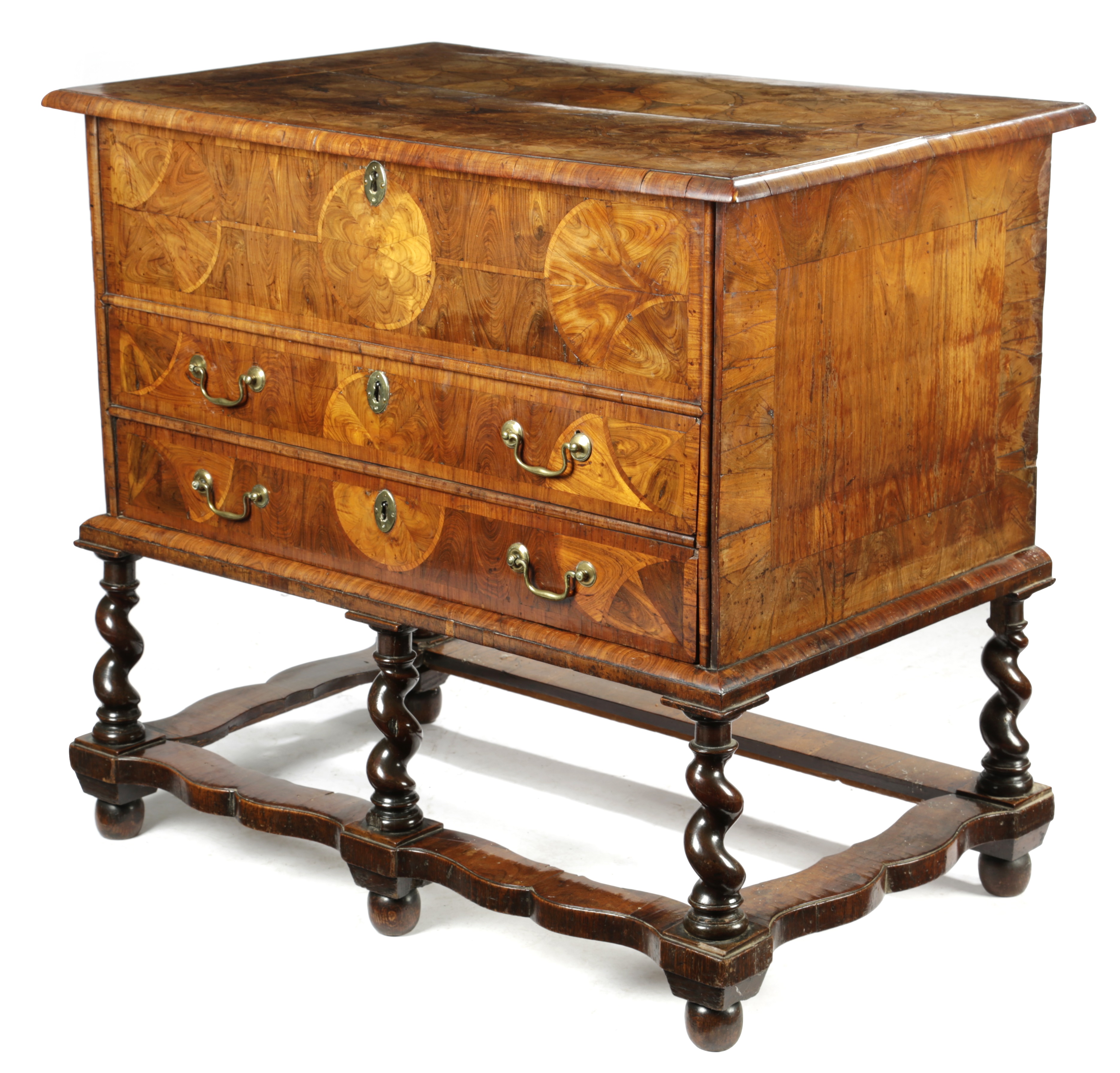 A RARE WILLIAM AND MARY KINGWOOD OYSTER VENEERED TABLE BOX OR LACE CHEST