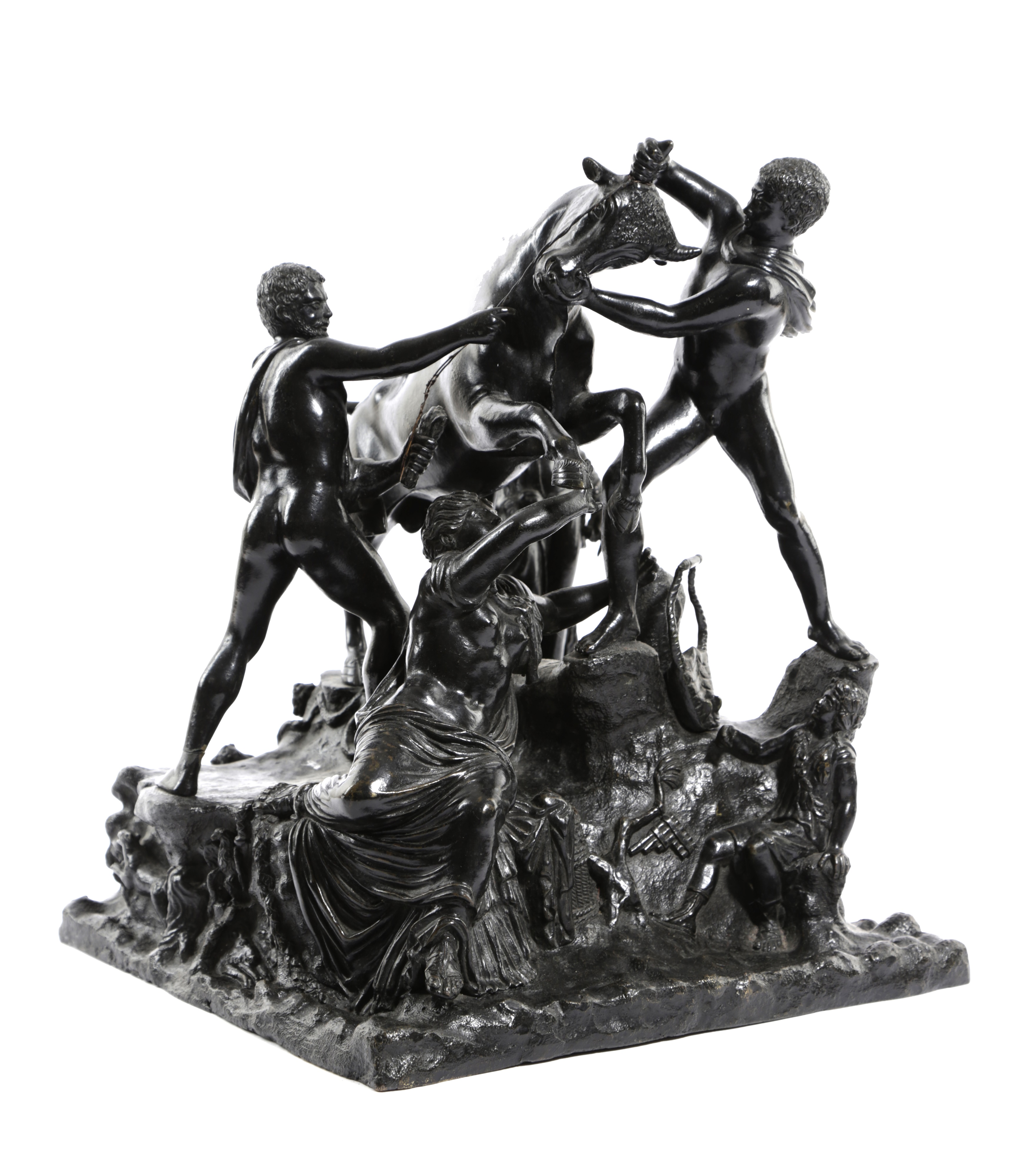 depicting Letus and Amphion attempting to tie Dirce to an enraged bull, with Endymion and Antiope, on a naturalistic base with a figure and fighting animals