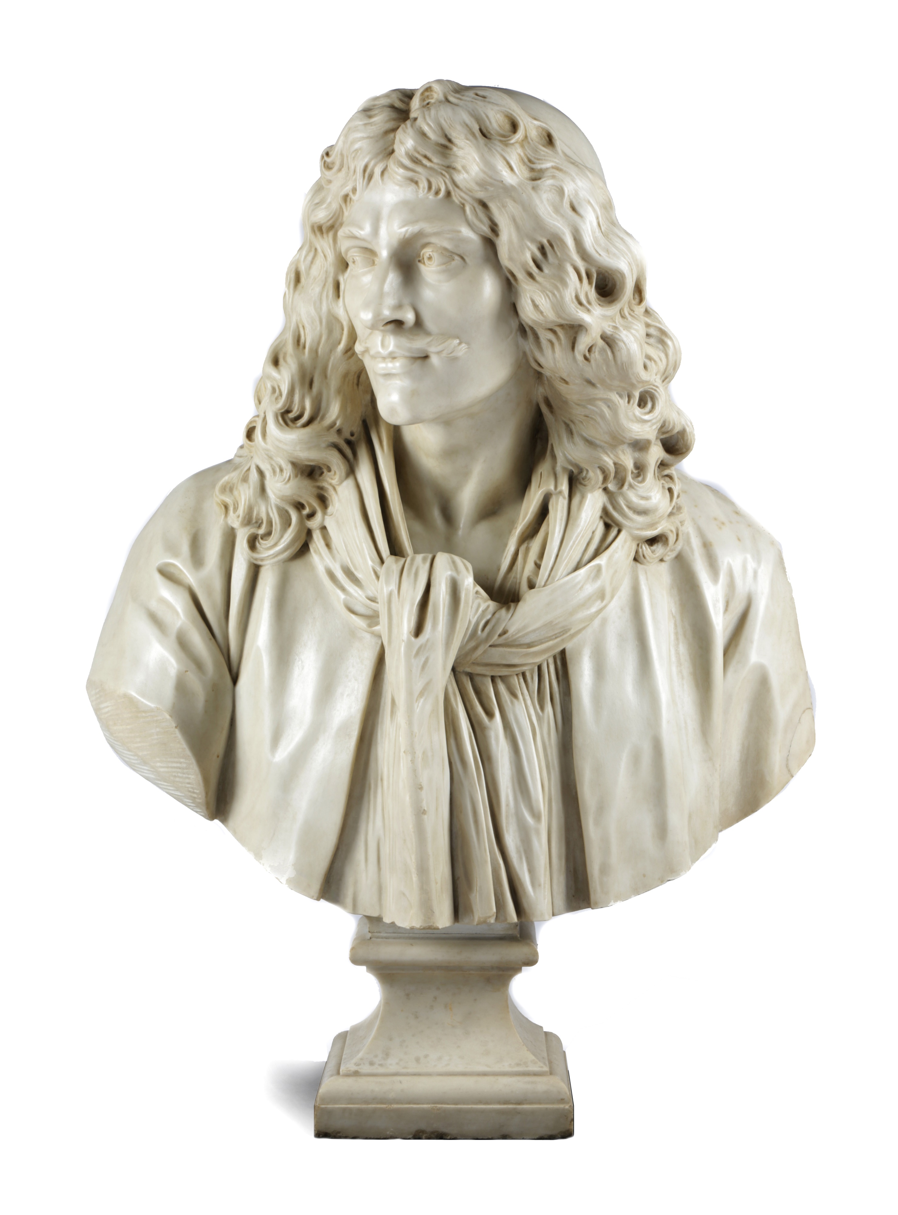 A FRENCH MARBLE PORTRAIT BUST OF MOLIERE