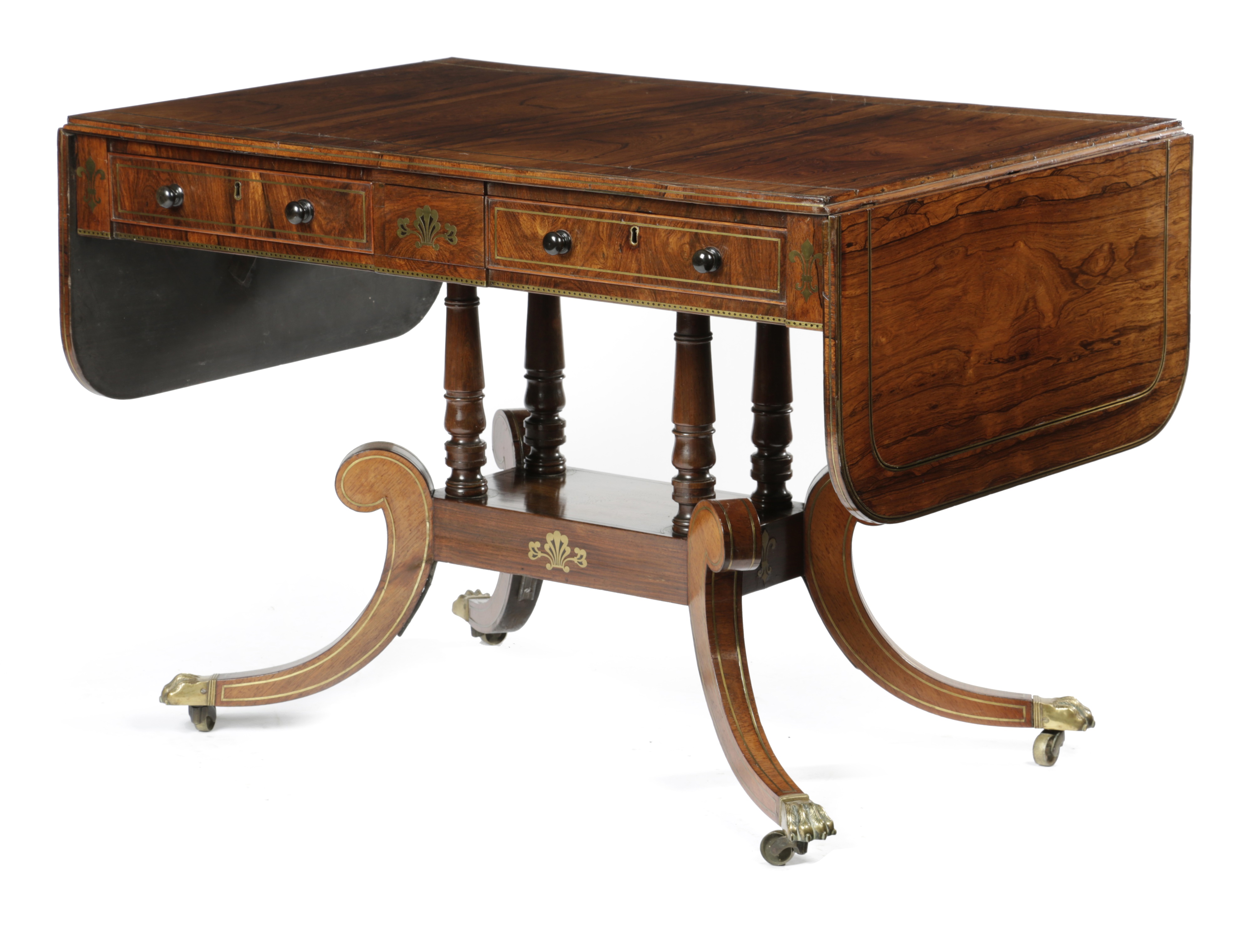 λA REGENCY ROSEWOOD AND BRASS INLAID SOFA TABLE