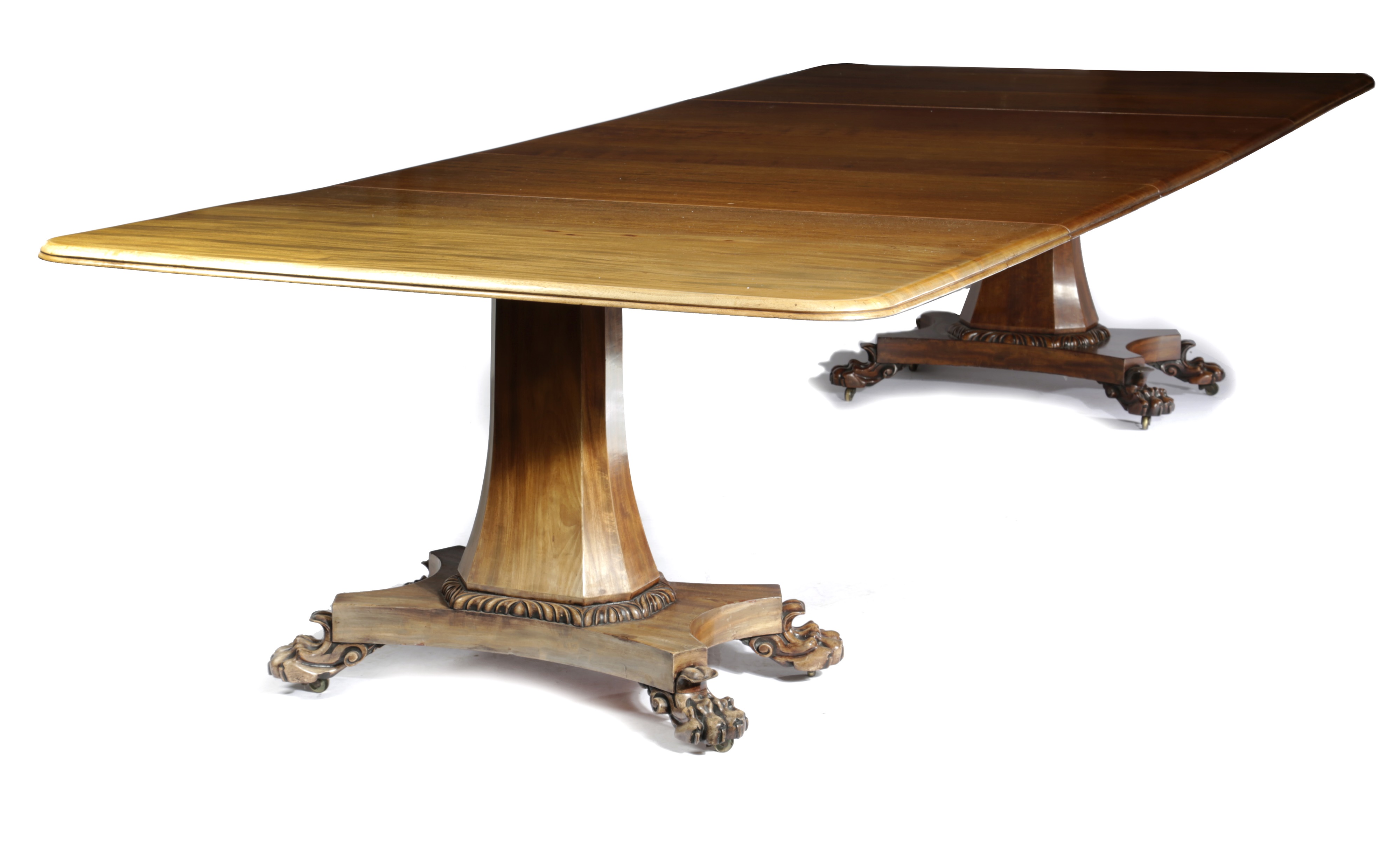 A GEORGE IV MAHOGANY TWIN PEDESTAL DINING TABLE