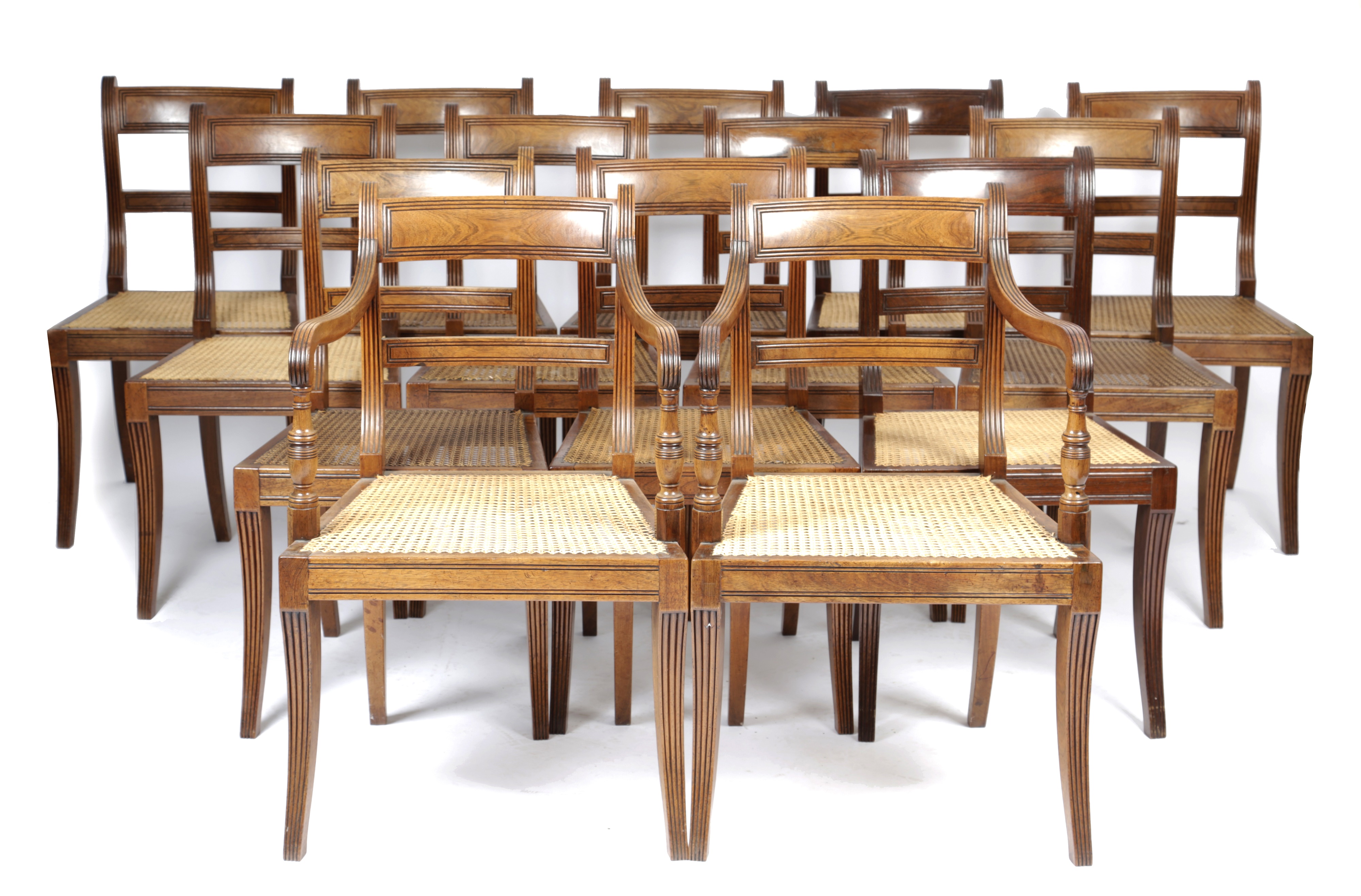 λ A SET OF TWELVE REGENCY ROSEWOOD DINING CHAIRS