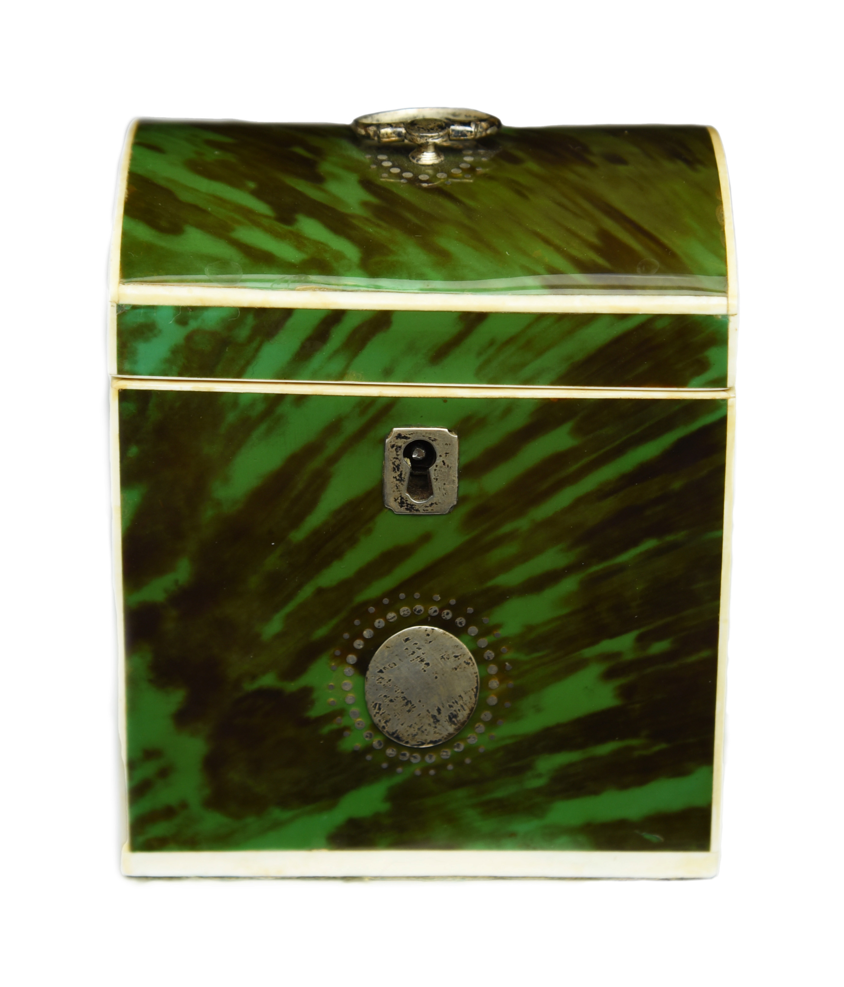 λ A GEORGE III GREEN TORTOISESHELL TEA CADDY