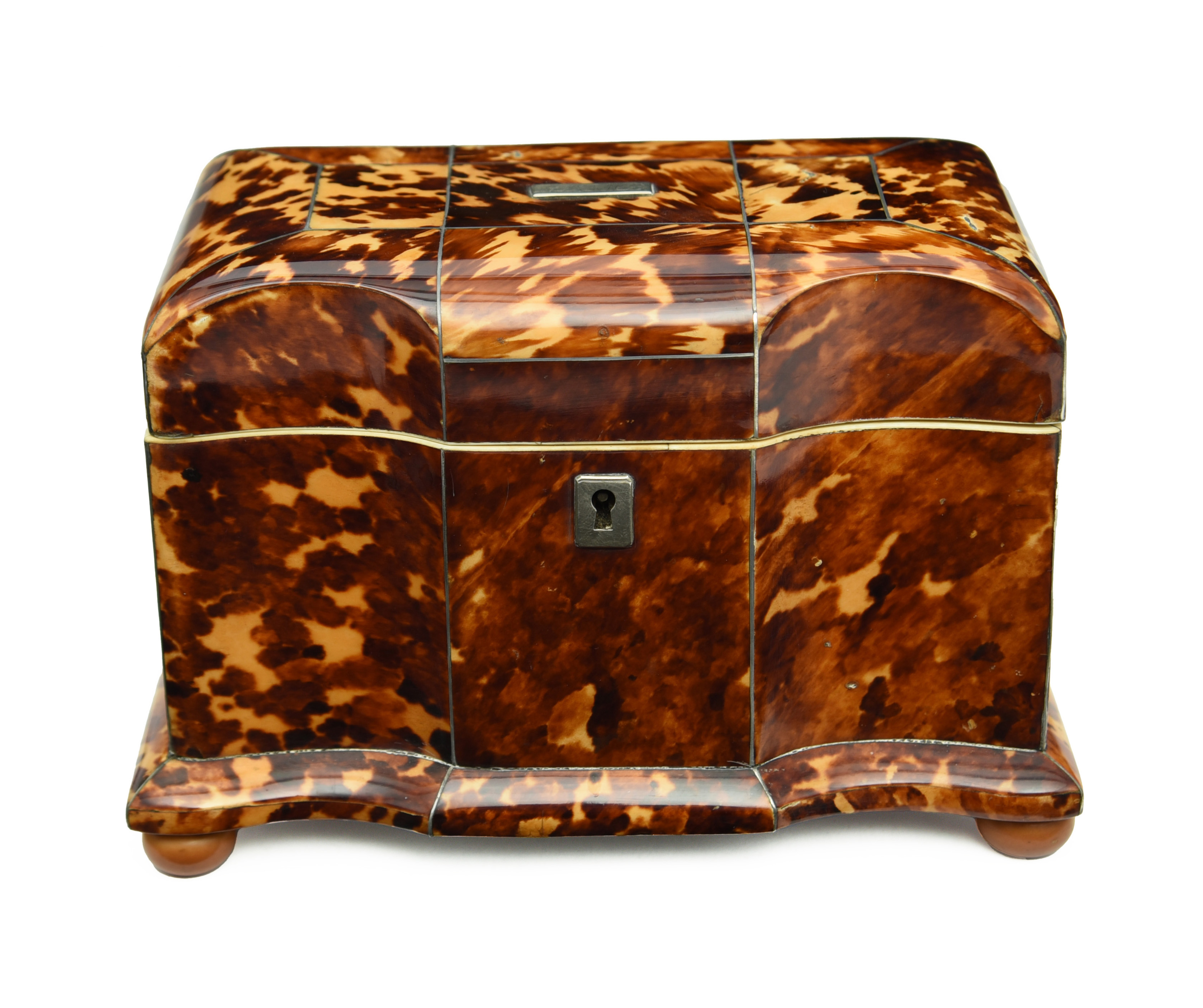 λ A WILLIAM IV TORTOISESHELL TEA CADDY