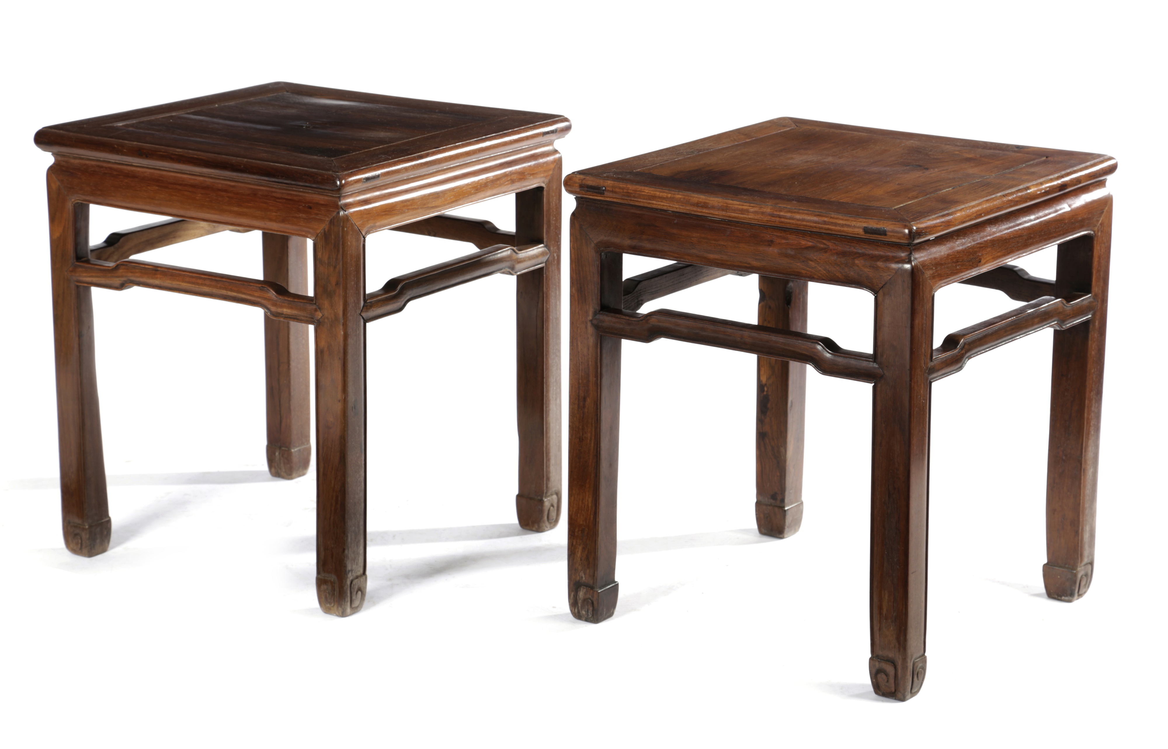 A PAIR OF CHINESE HARDWOOD STOOLS