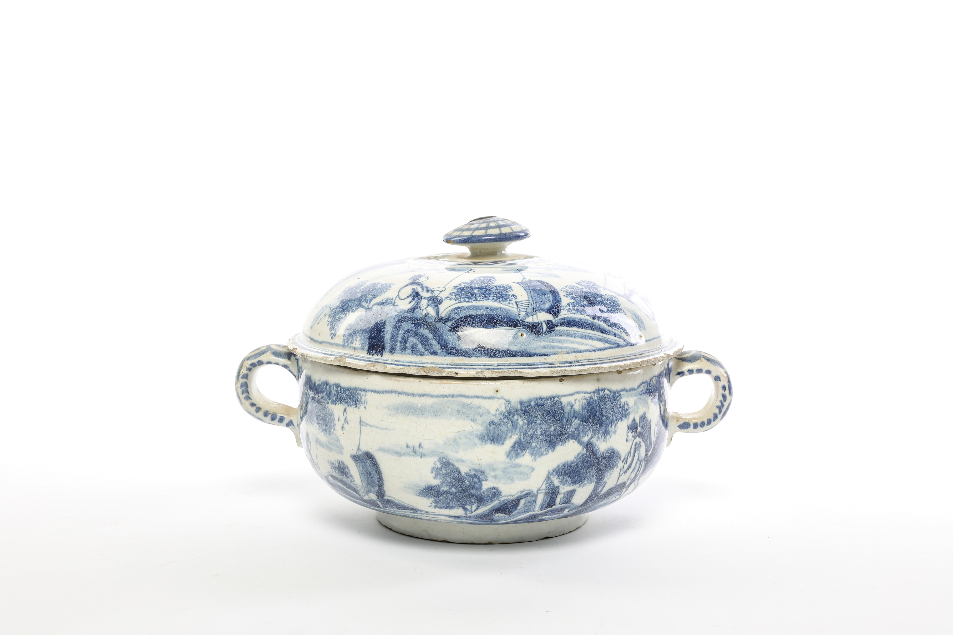 A DELFWARE MILK TUREEN OR BROTH BOWL AND COVER