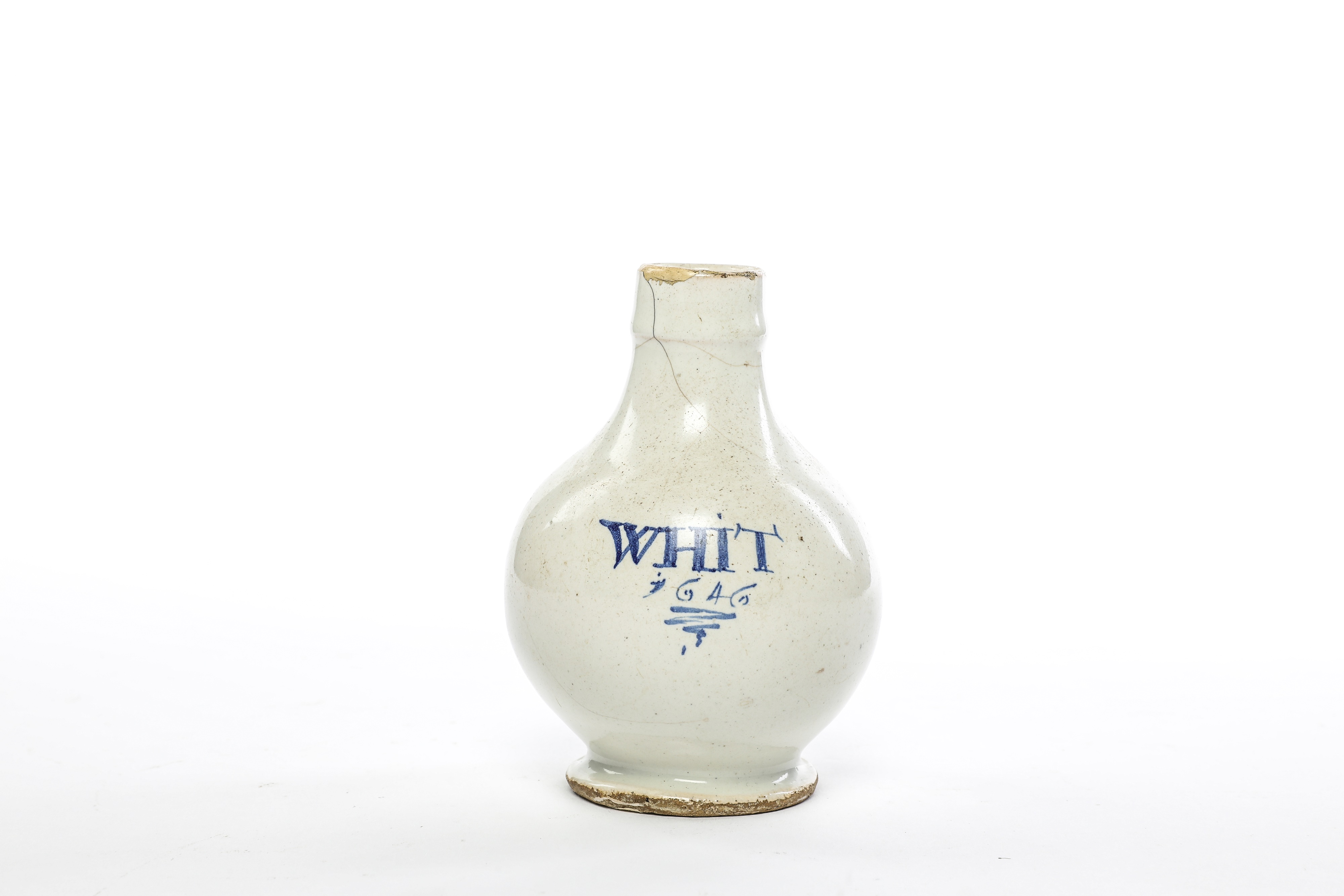 Please see Lipski and Archer, Dated English Delftware, 1984, for three whit bottles dated 1646, figs 1323-1325.