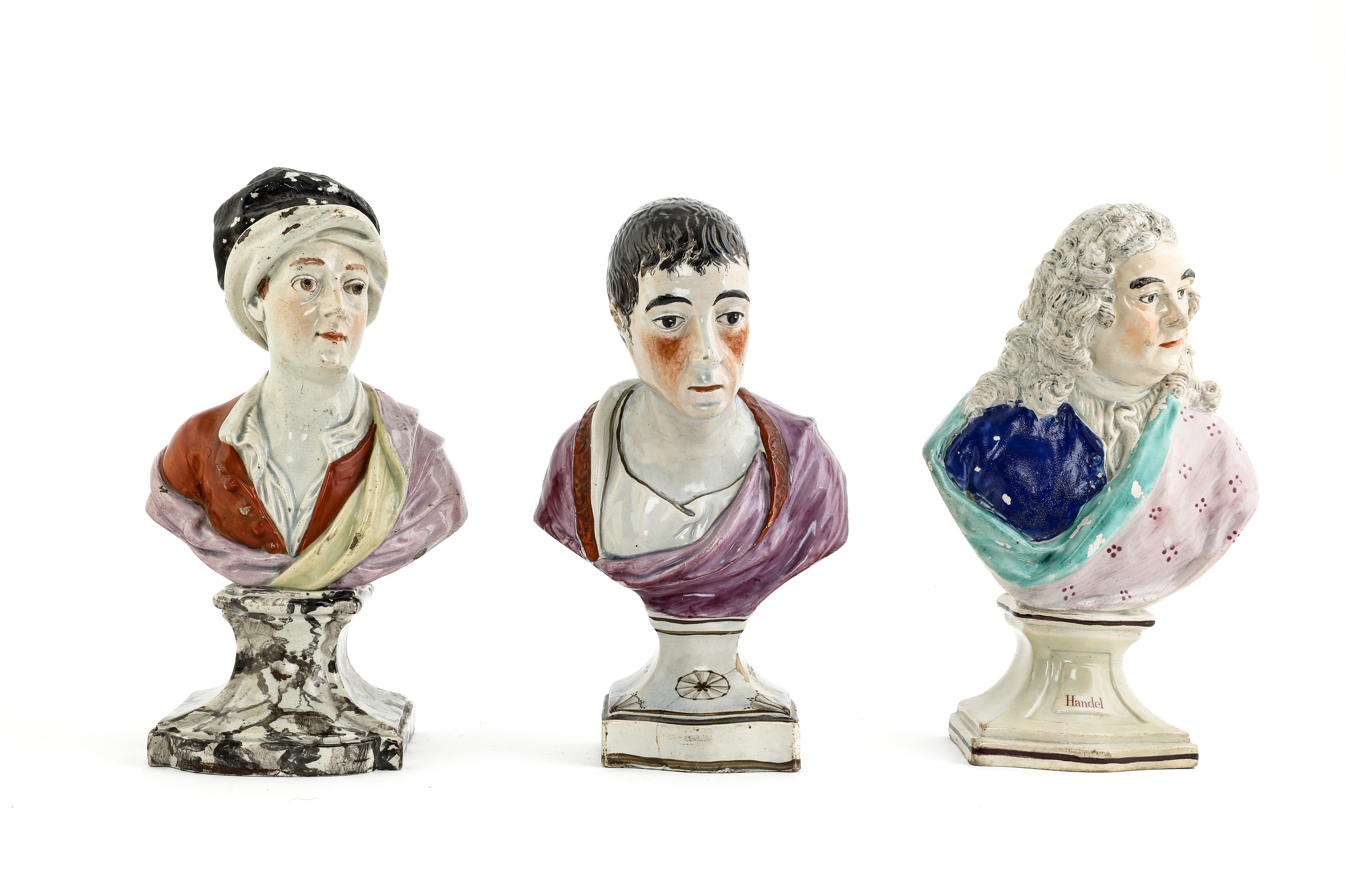 A STAFFORDSHIRE PEARLWARE BUST OF HANDEL