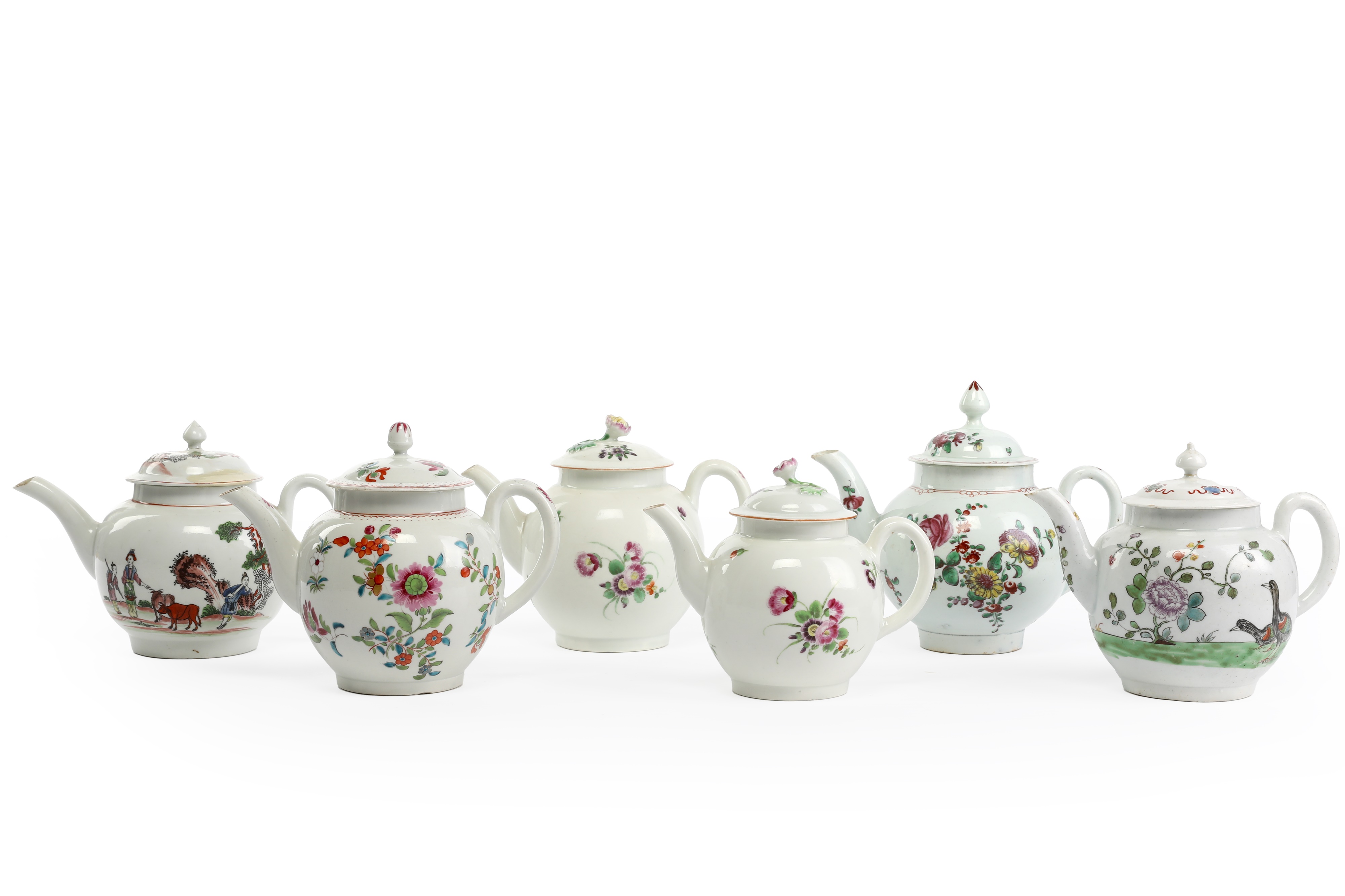 A COLLECTION OF FIVE WORCESTER TEAPOTS AND COVERS