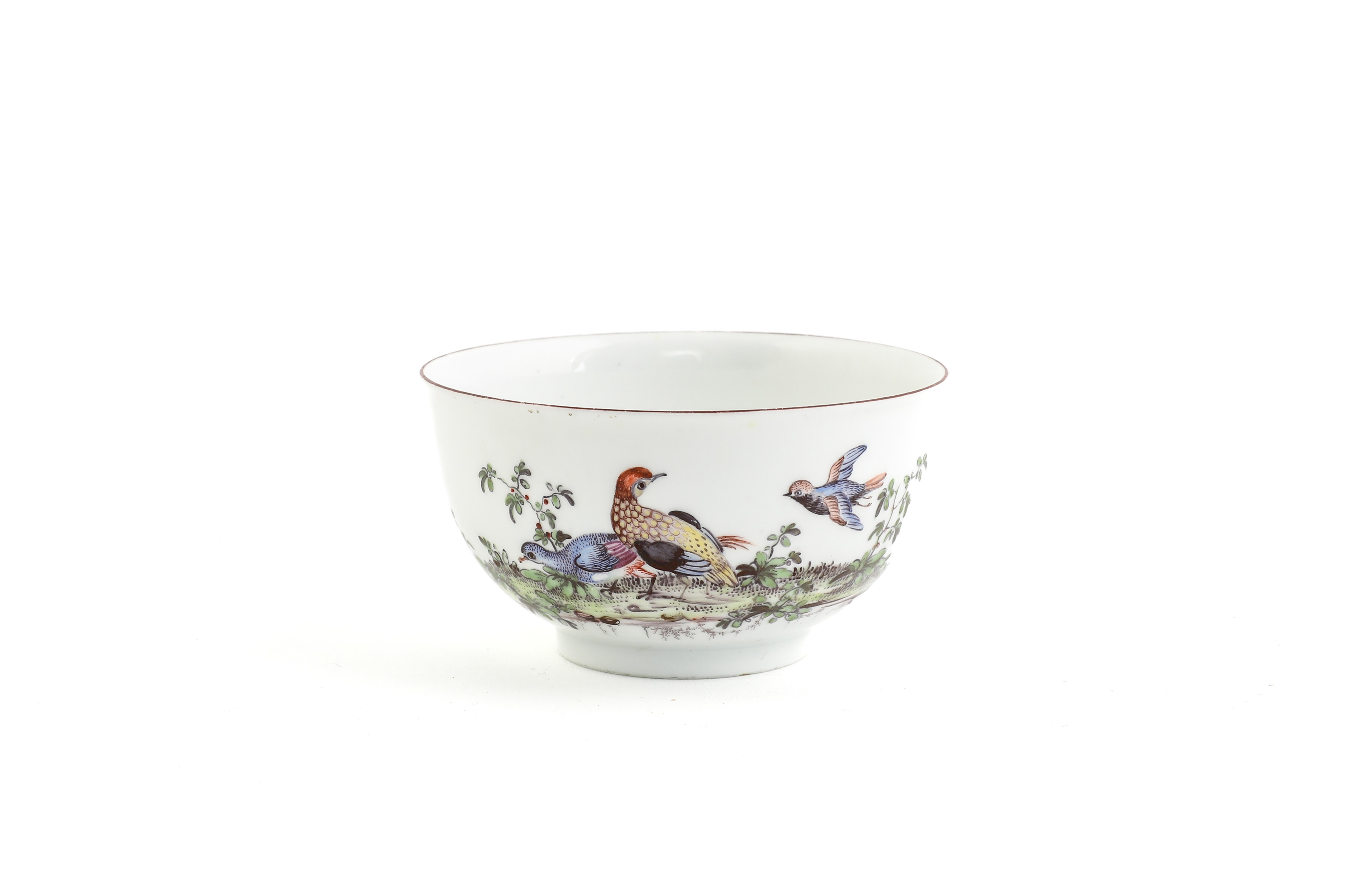 painted with colourful birds amongst foliage, the reverse and interior with butterflies and other insects, red anchor mark