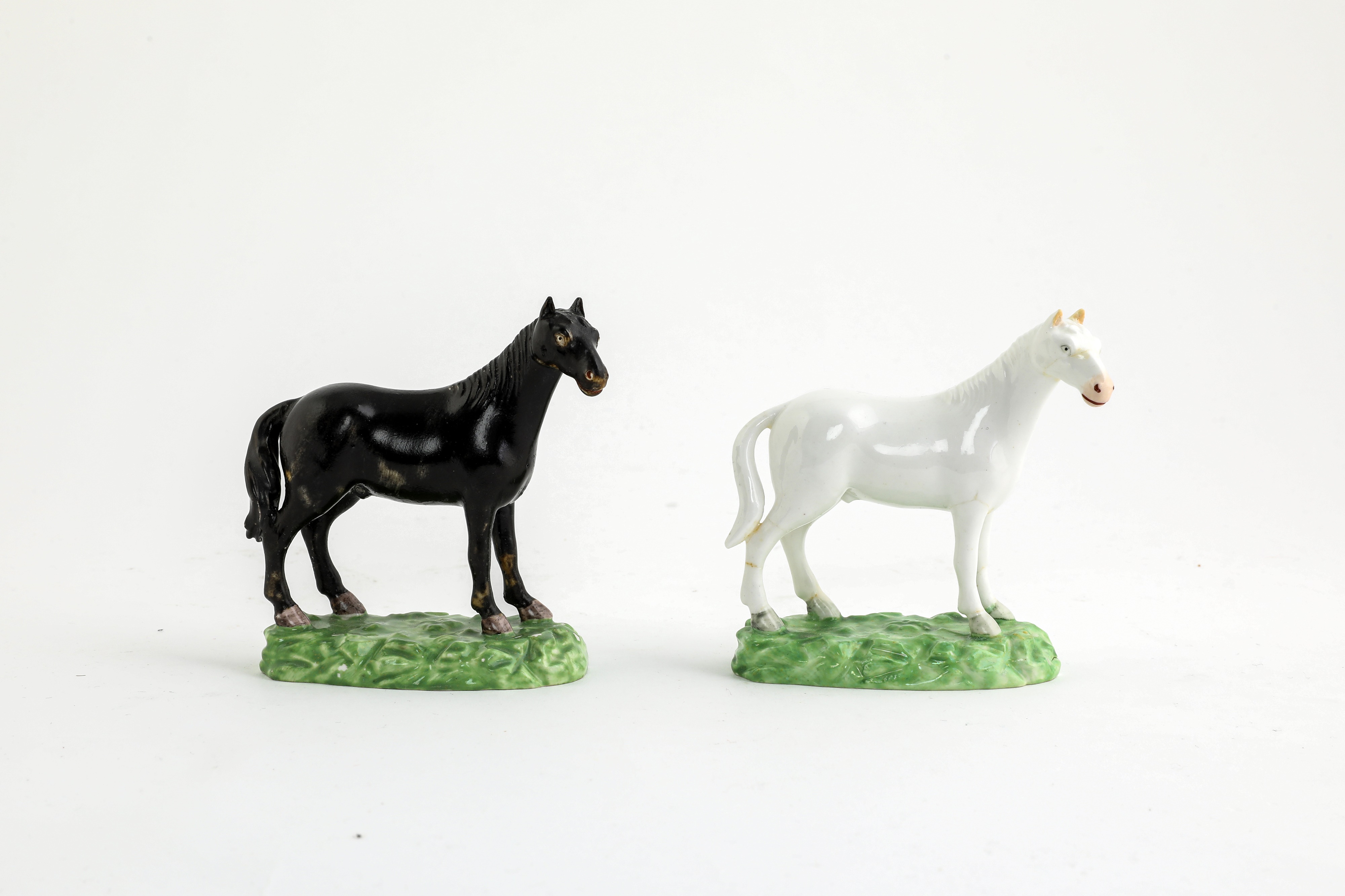 one white, the other black, both raised on green moulded bases, red painted marks (2)