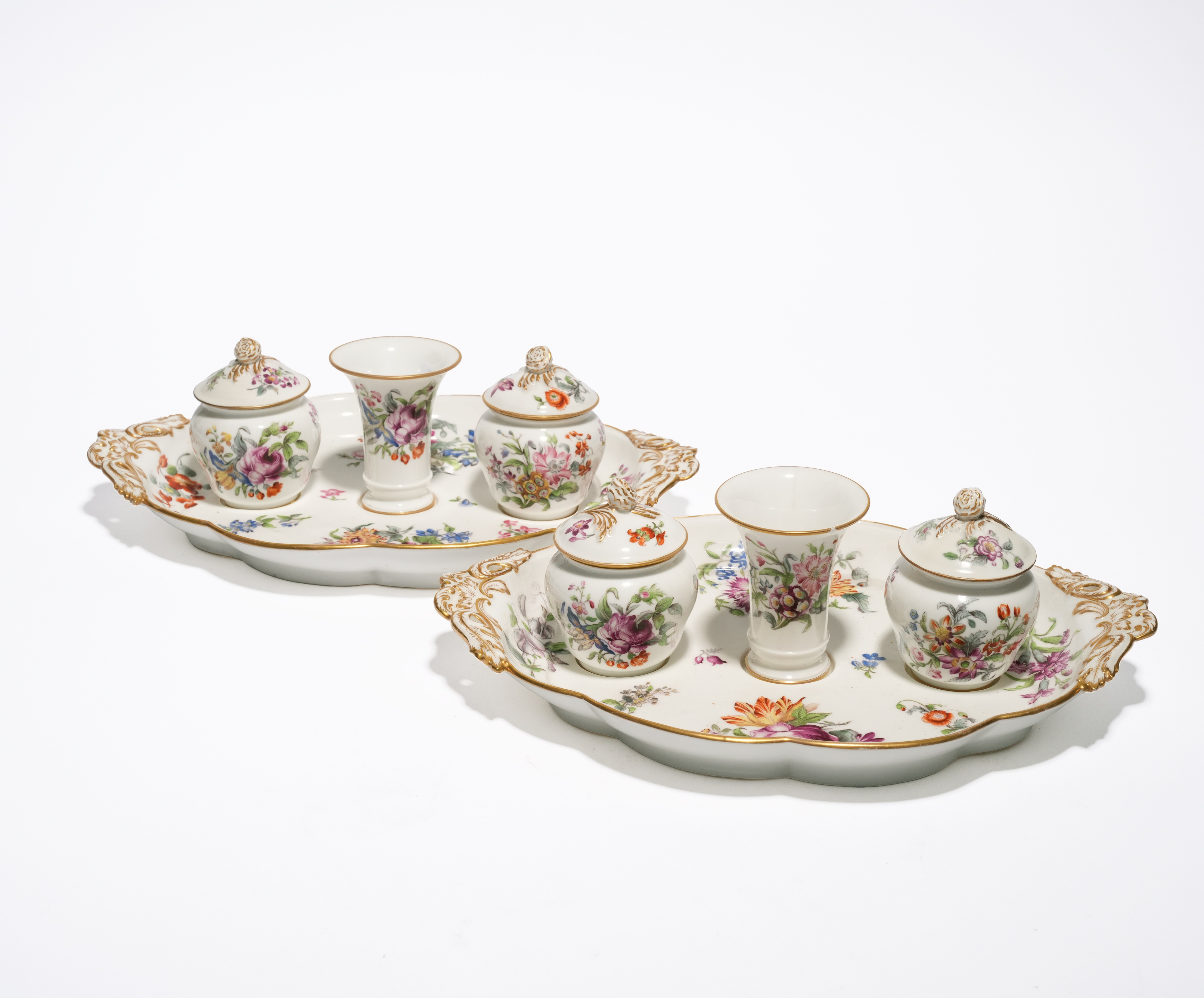 A COLLECTION OF COALPORT INKSTANDS OR DESK SETS