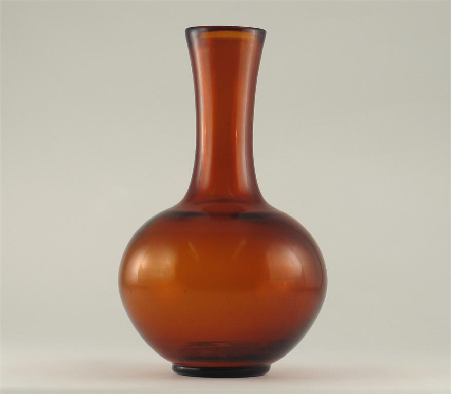 A Chinese Beijing amber coloured glass bottle vase
